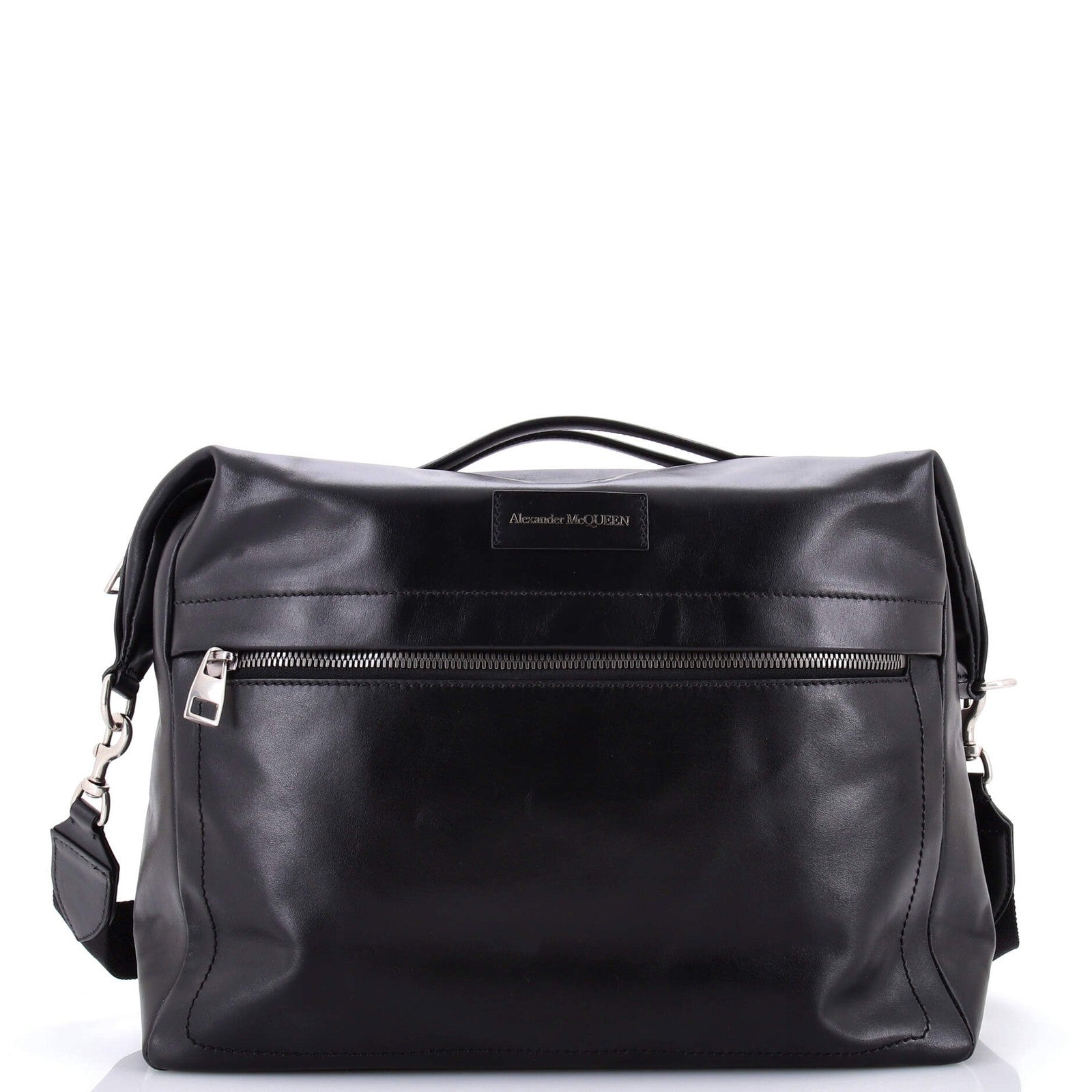 Alexander Mcqueen Front Zip Logo Messenger Bag Leather Medium