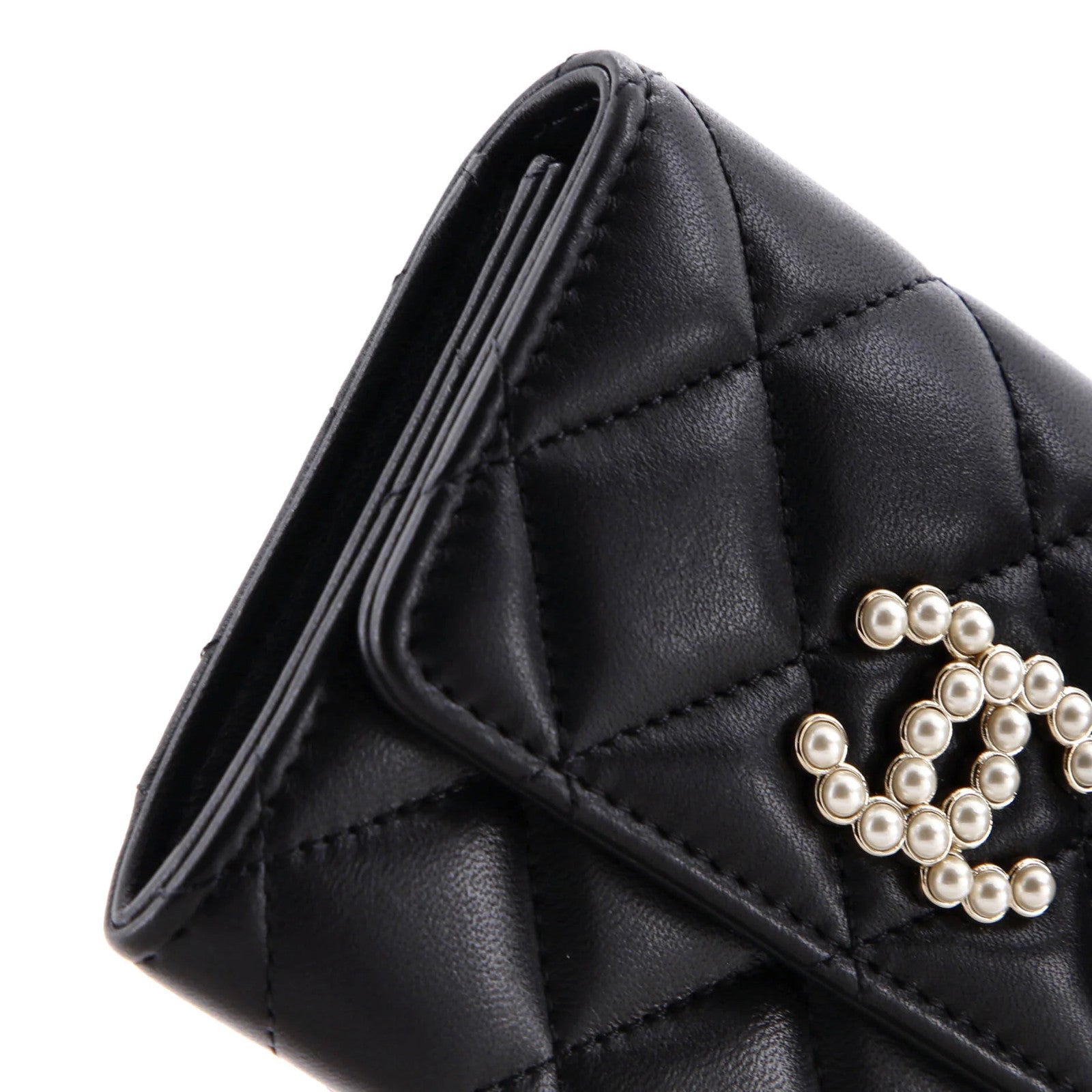 Chanel Cc Pearl Flap Coin Purse Quilt Lambskin