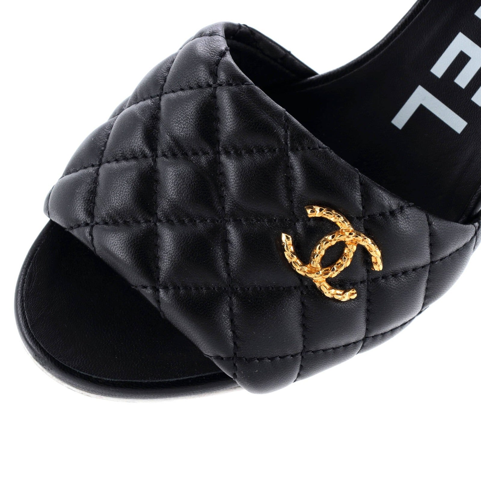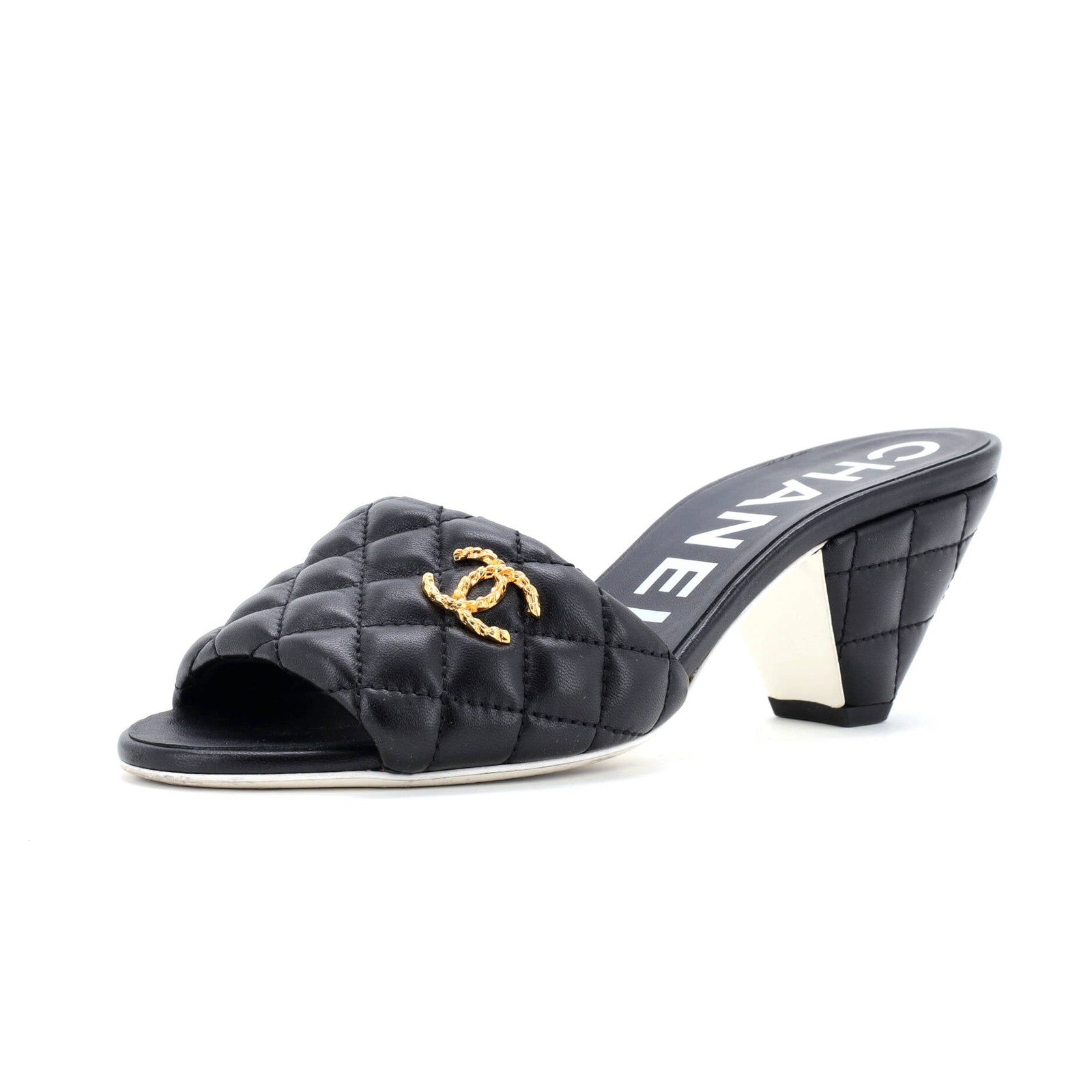 Chanel Women'S Cc Heeled Mule Sandals Quilted Leather