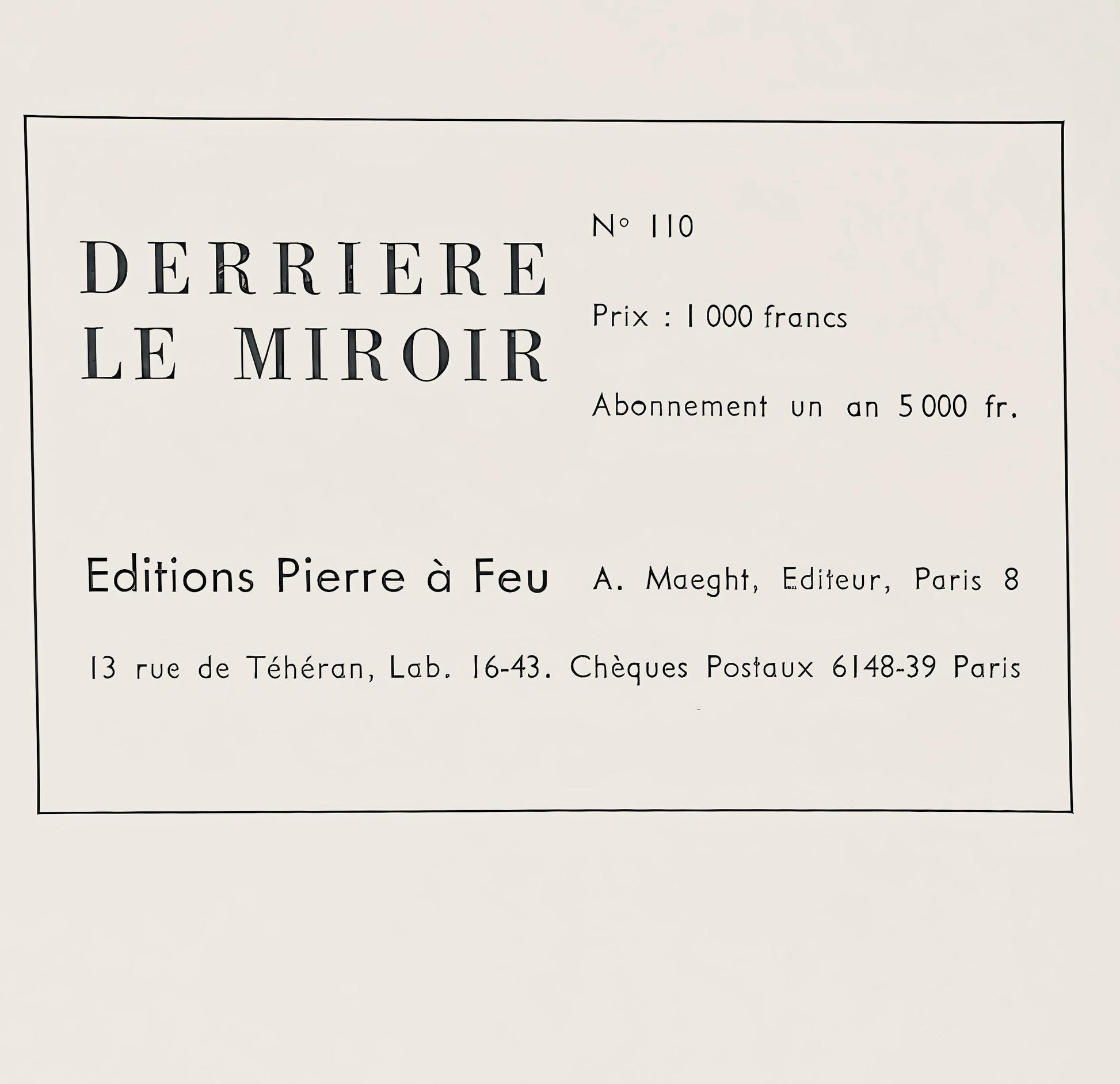Aim Maeght, initiator of Derrire le Miroir, had already made few attempts to start publications illustrated with fine printed lithographs in colours in the years prior to the launch of Derrire le Miroir.