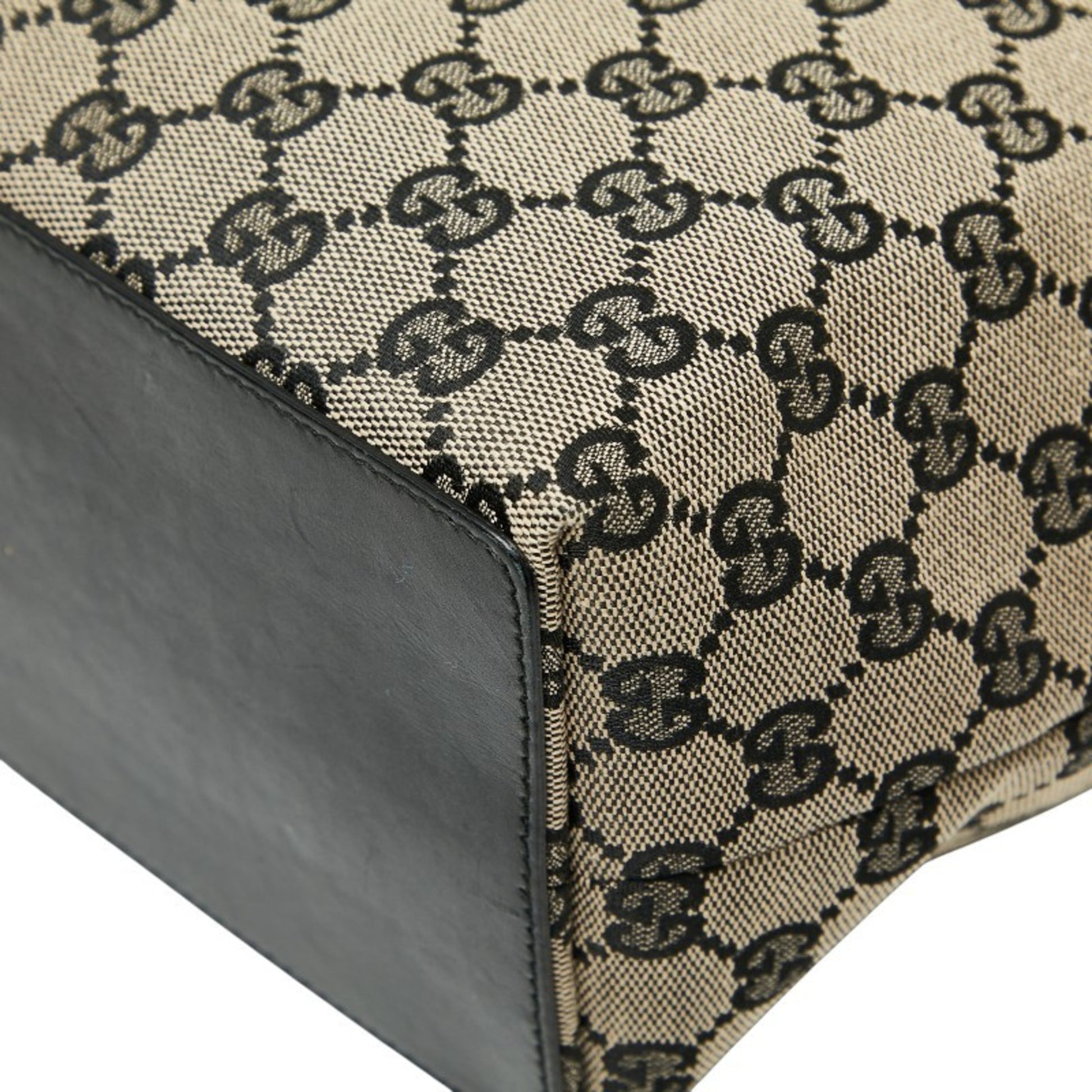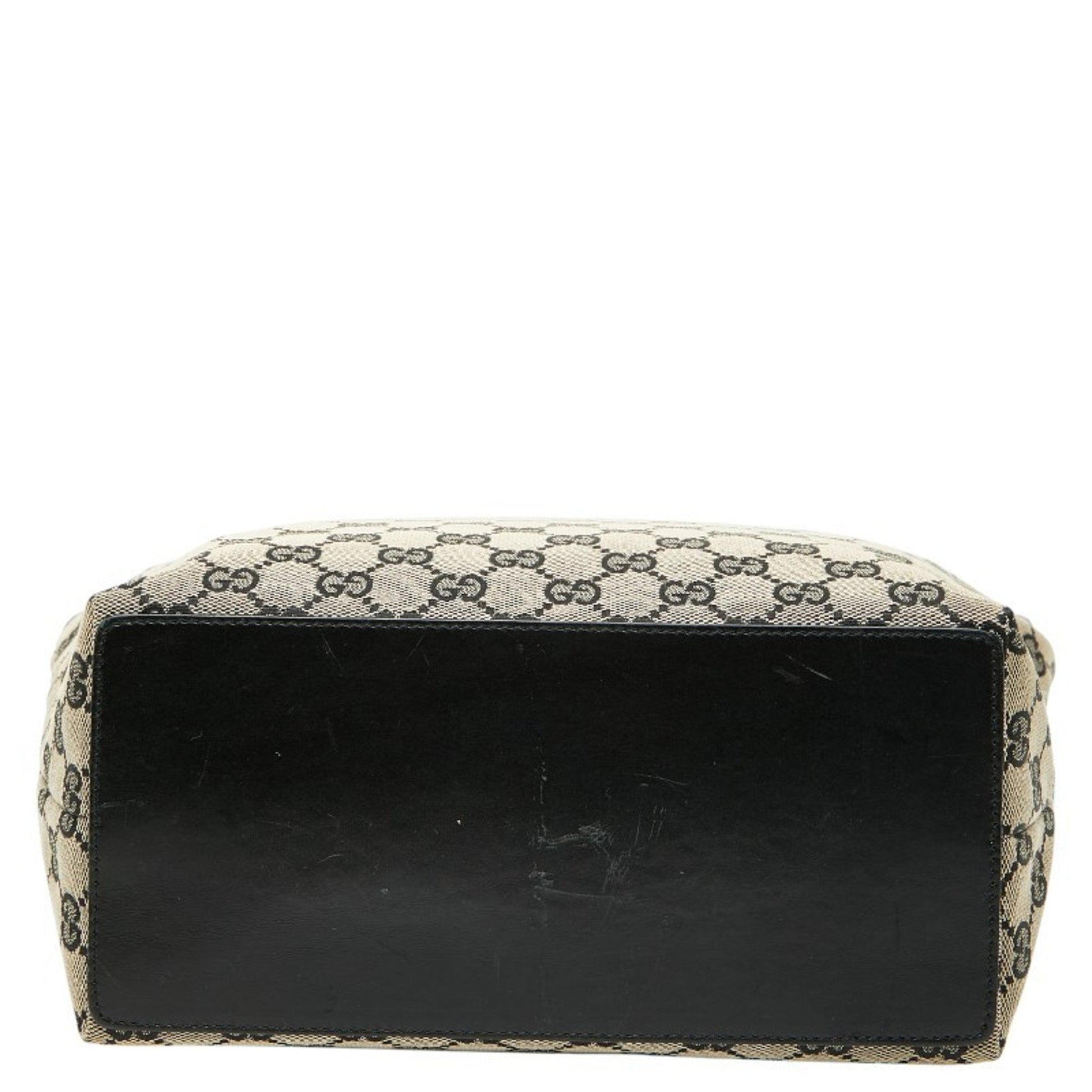 Gucci Gg Canvas Tote Bag Handbag 002 1098 Beige Black Leather