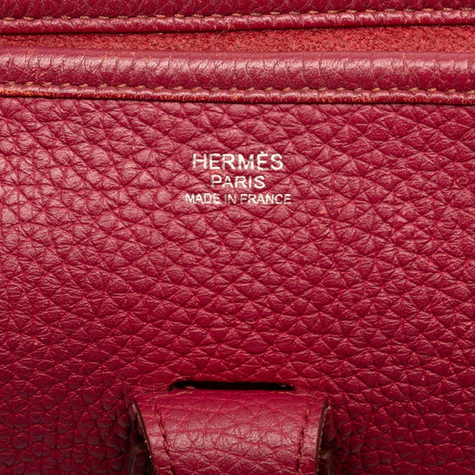 Hermes Herms Evelyne 1 Pm Shoulder Bag In Red With Silver Hardware And Taurillon Clemence Leather