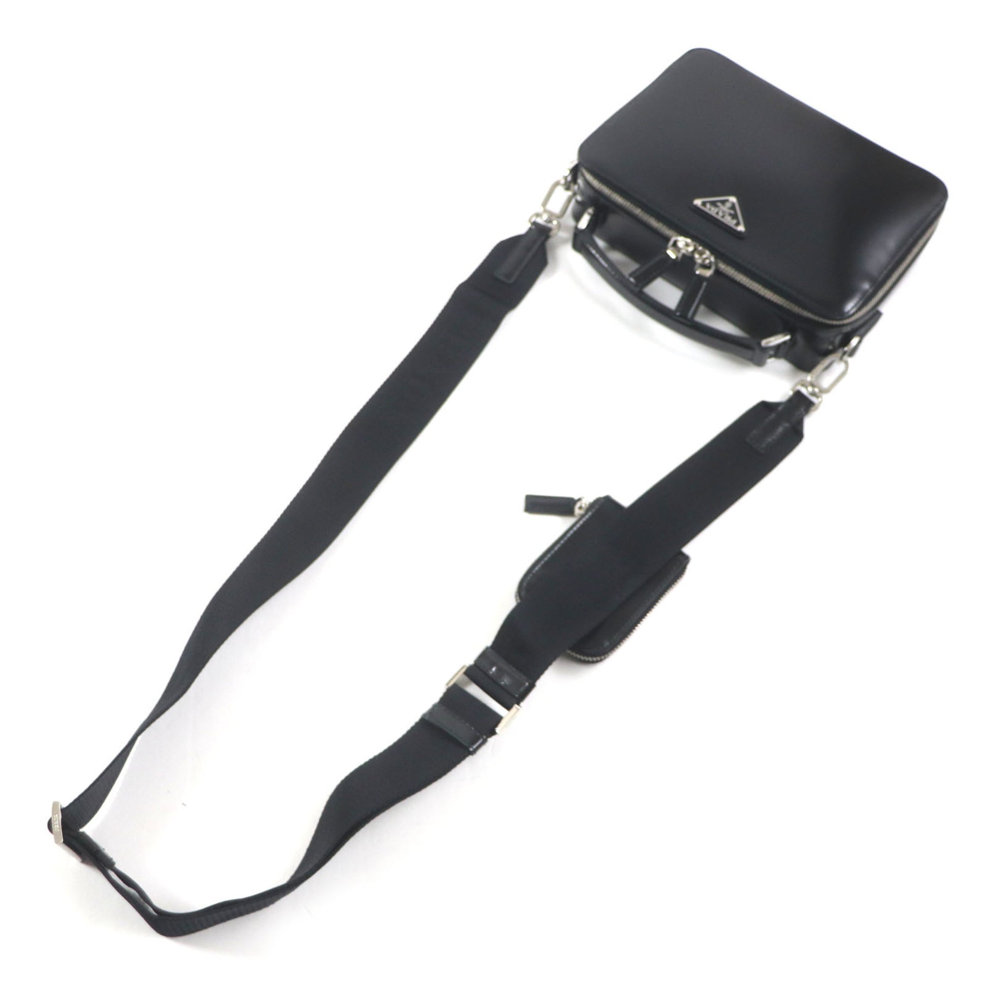 Prada 2Vh069 Brick Triangle Logo 2-Way Brushed Leather Shoulder Bag With Pouch