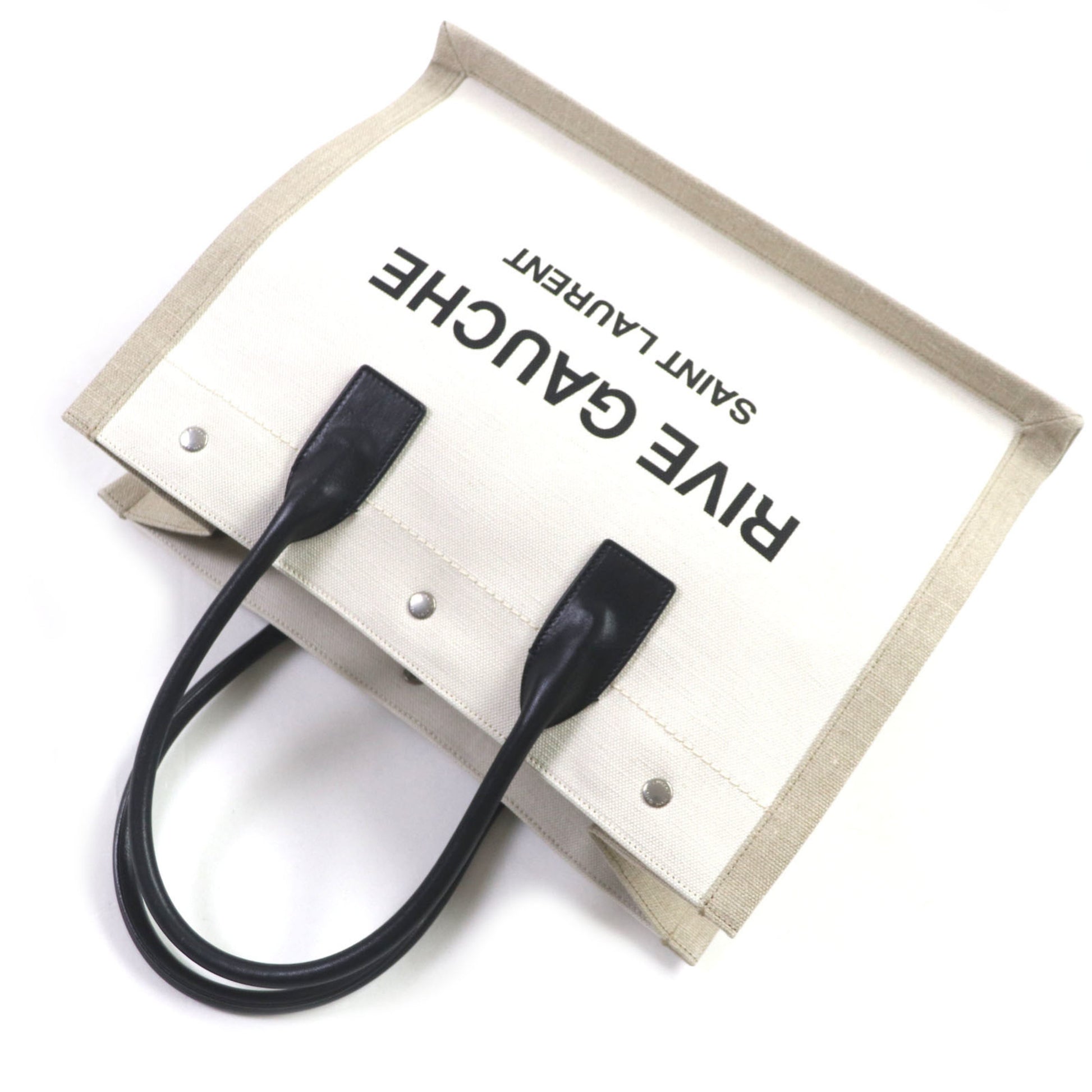 Saint Laurent 617481 Rive Gauche Logo Canvas And Leather Tote Bag In Beige Black With Dust Bag
