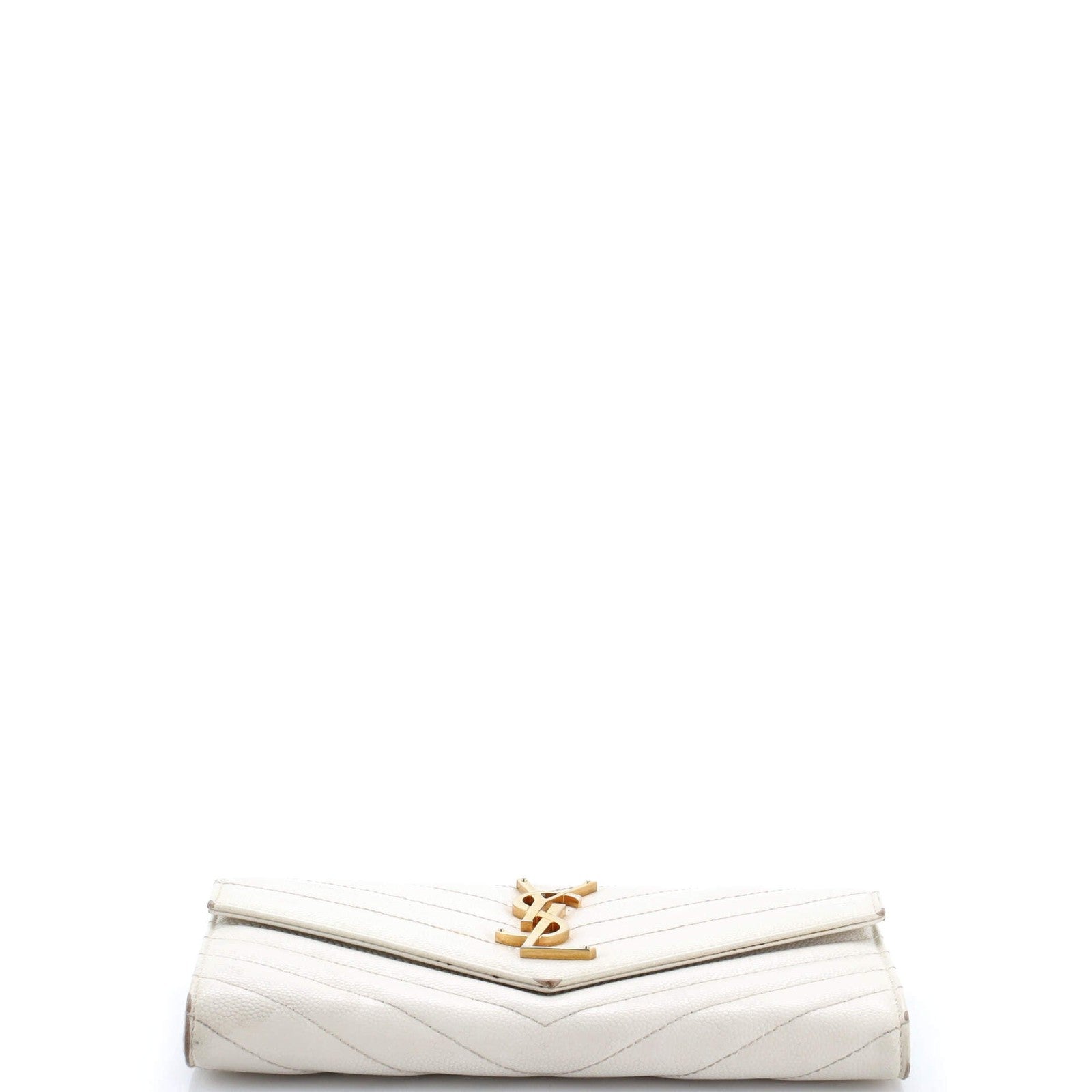 Saint Laurent Classic Monogram Flap Wallet Matelasse Chevron Leather Large