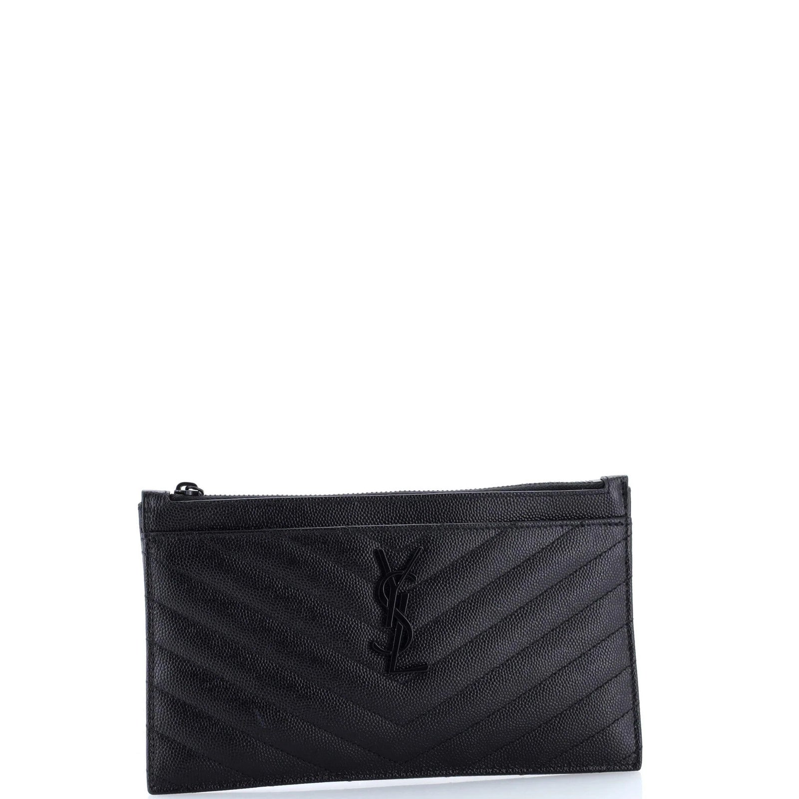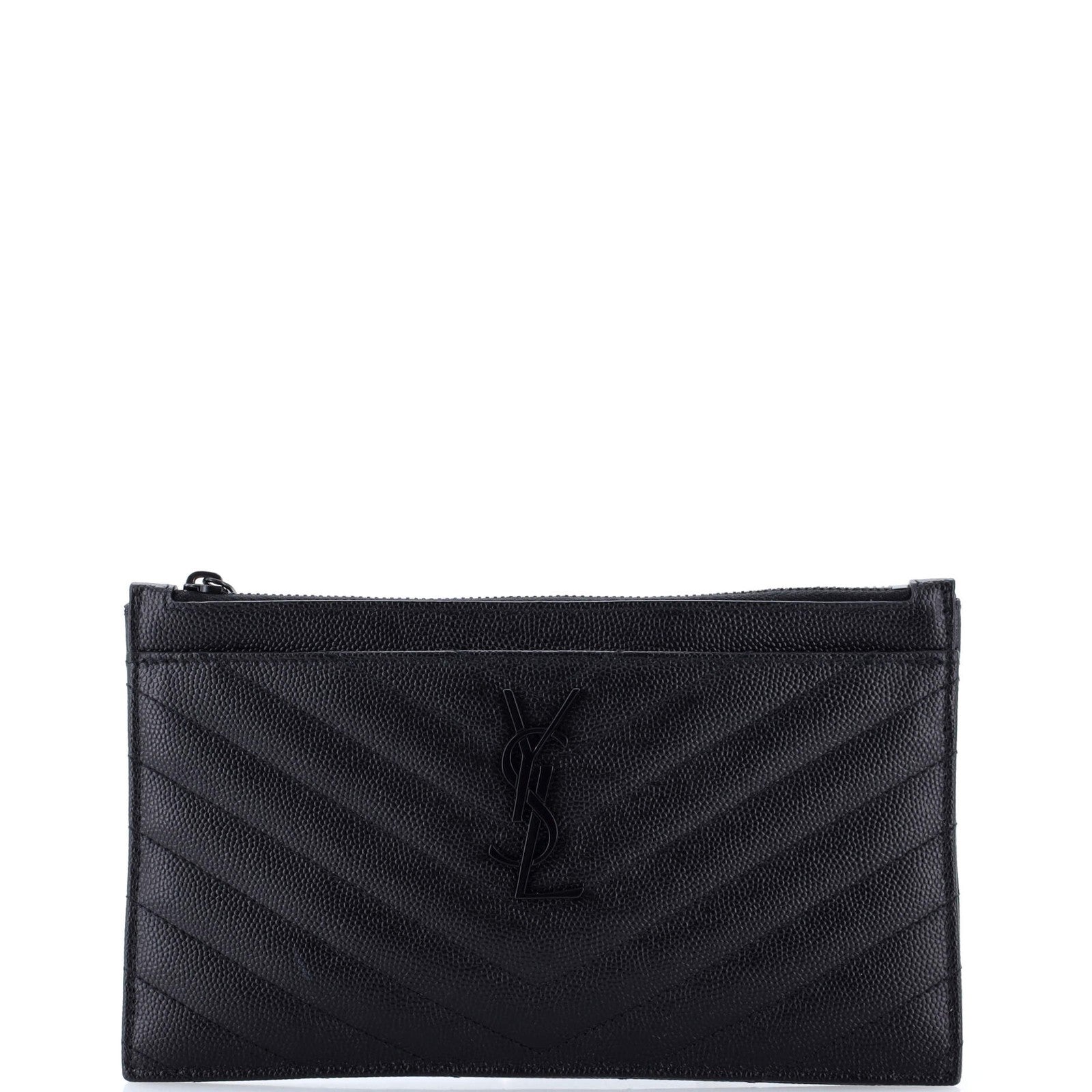 Saint Laurent Classic Monogram Zip Bill Pouch Matelasse Chevron Leather Medium