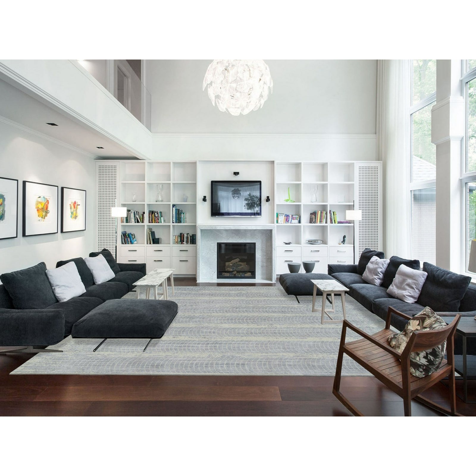 Rug 12'x17'10" Gray Wool And Plant Based Silk Hand Loomed Oversized