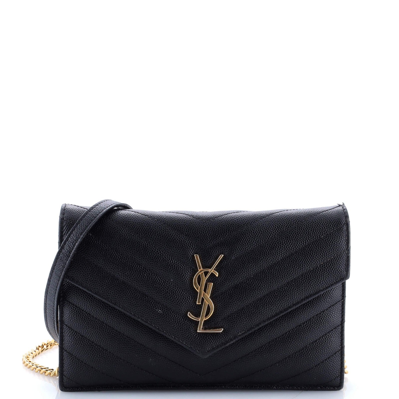 This listing features Small Saint Laurent Classic Monogram Wallet on Chain Matelasse Chevron Leather. Item specifics are provided below.