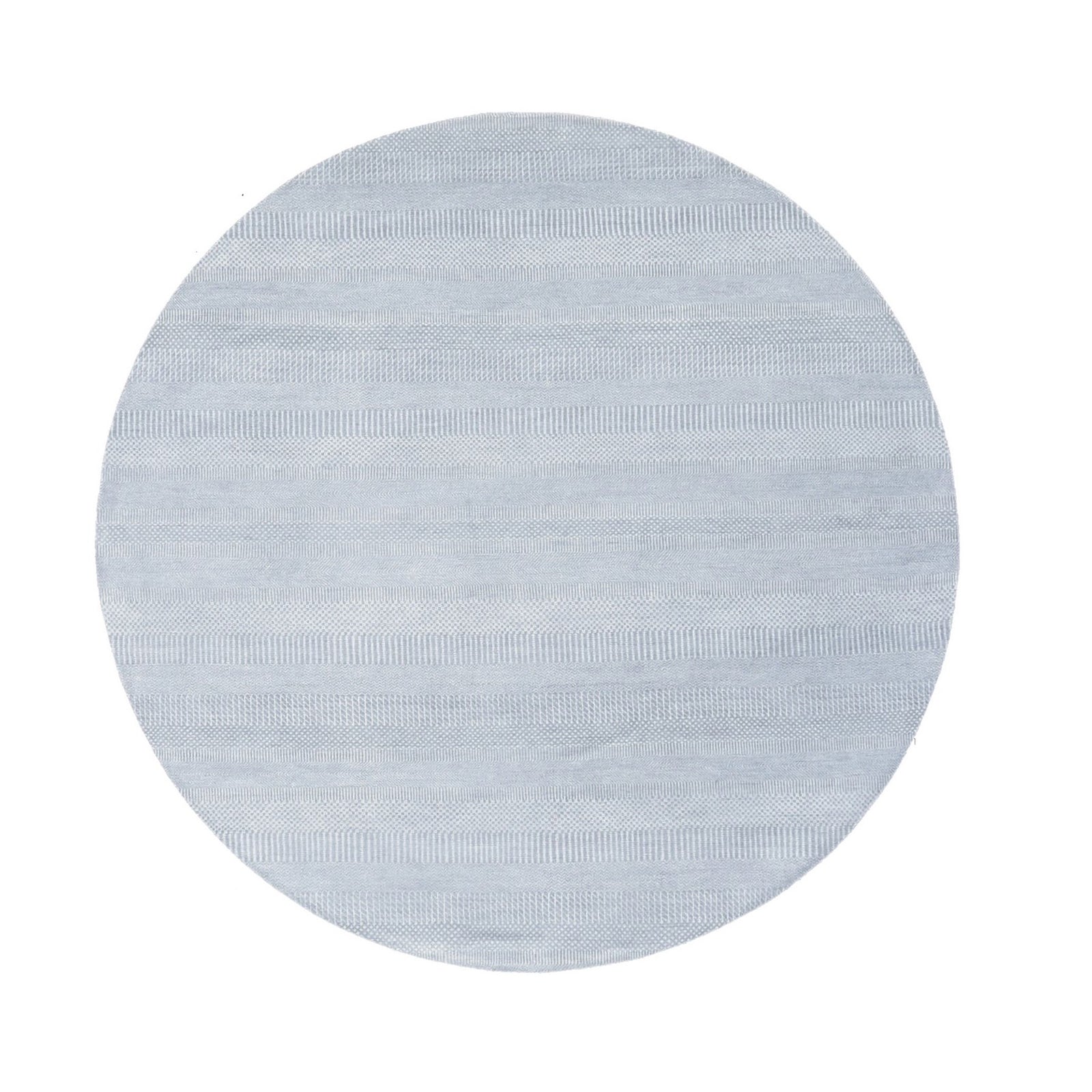 Rug 7'9"x7'9" Ivory Modern Grass Design Wool and Silk Hand Knotted Round