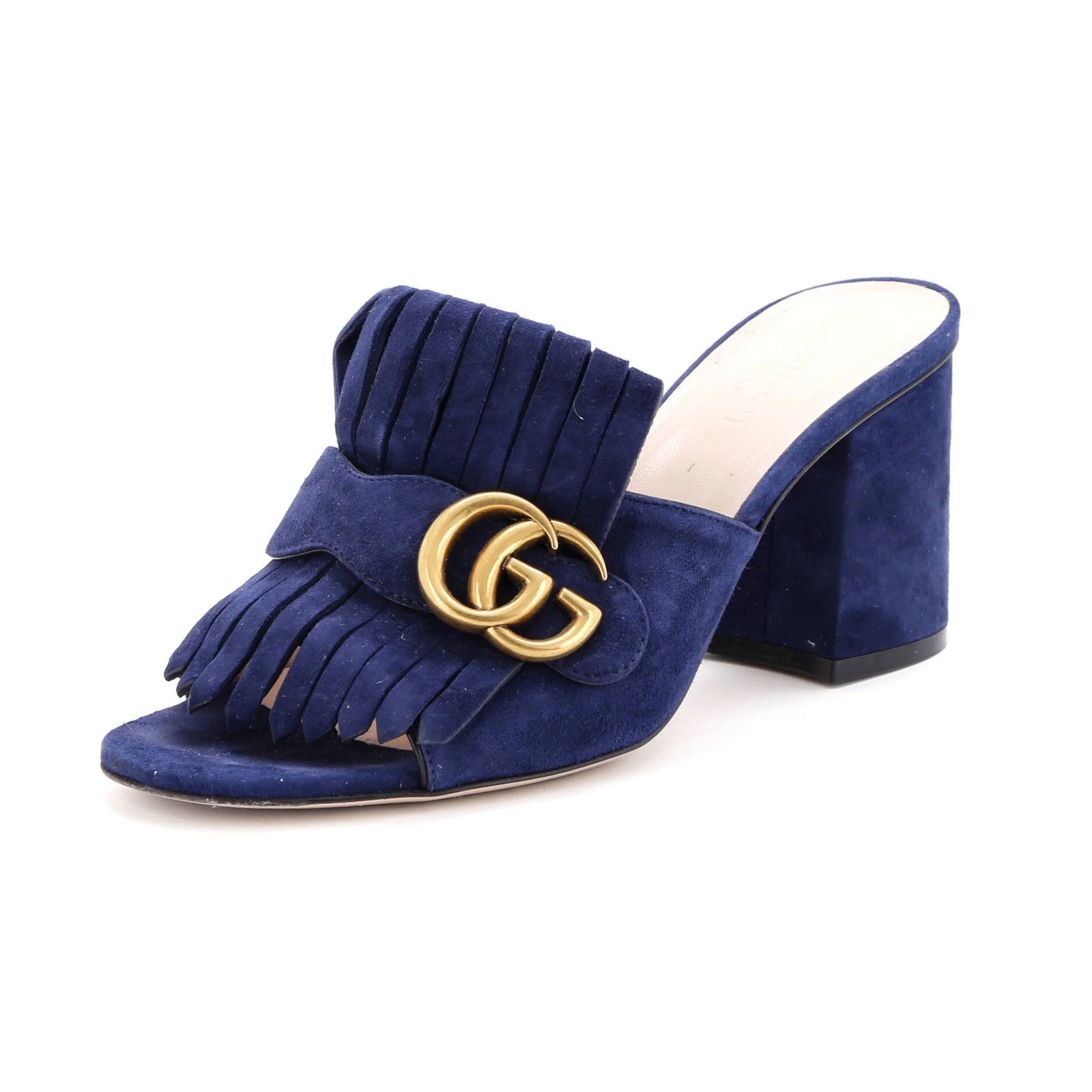 This listing features Suede Gucci Women's GG Marmont Fringed Heeled Sandals. Item specifics are provided below.