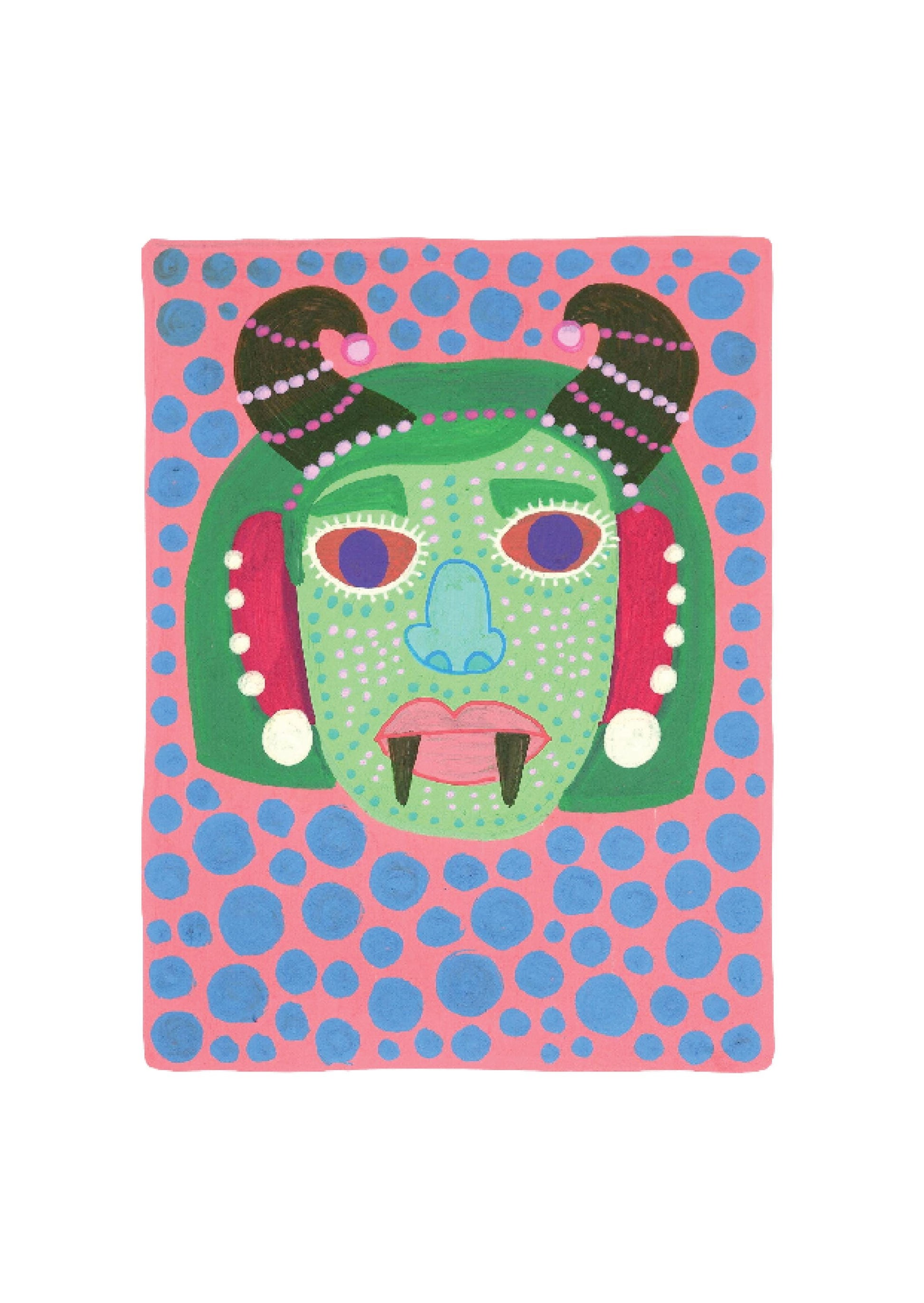 Inspired by the South Indian Drishti Bommai mask; a protective talisman traditionally represented as a doll; this artwork draws from a visual language widely seen across South India.