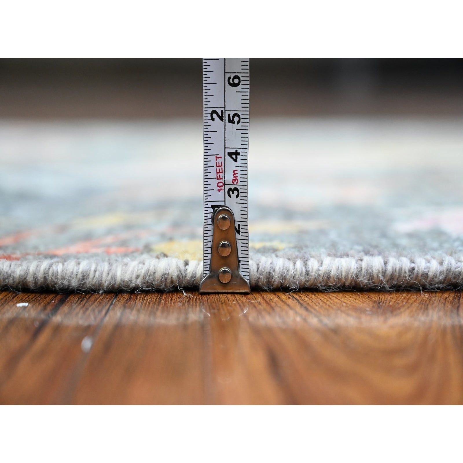 Rug 2'6"x6'2" Gray Hand Knotted Soft Wool Birds Paradise Peshawar Runner