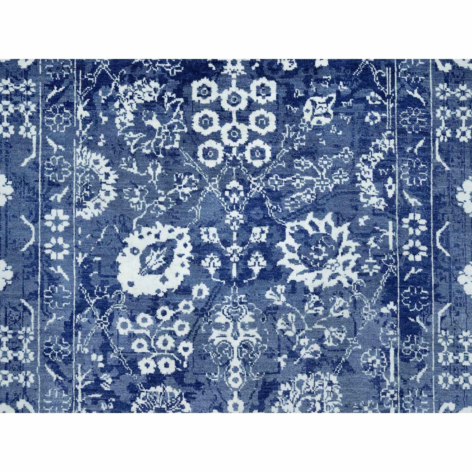This listing features Rug 5'1"x6'10" Revel Blue Hand Knotted Tebraz Leaf Design Wool and Silk. Item specifics are provided below.