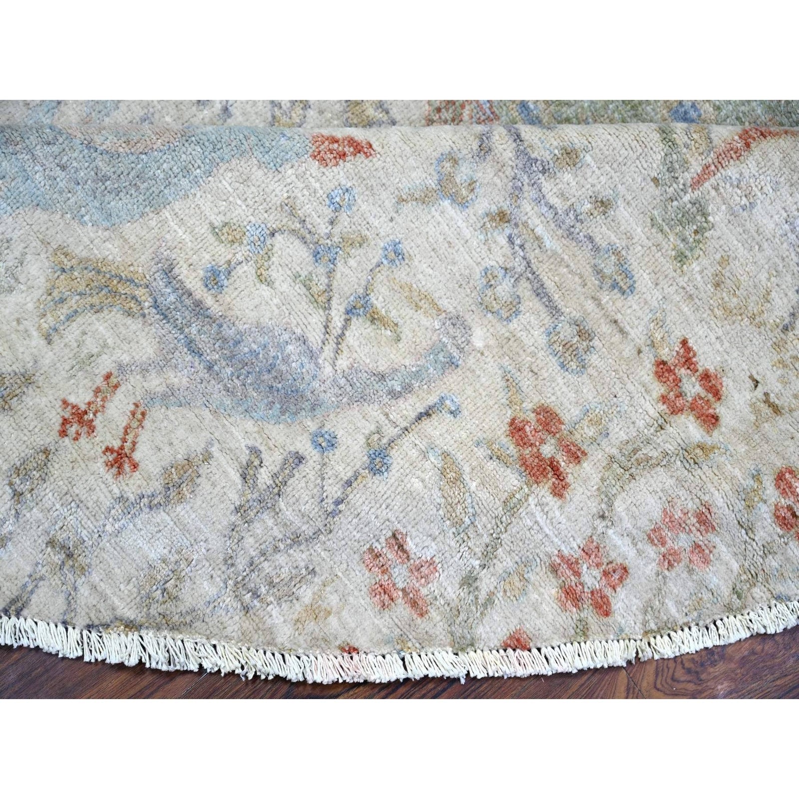 Rug 8'x8' Lexicon Ivory Afghan Peshawar Organic Wool Hand Knotted Round