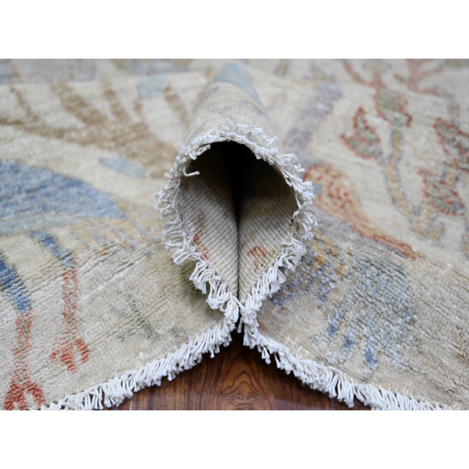 This listing features Rug 8'x8' Lexicon Ivory Afghan Peshawar Organic Wool Hand Knotted Round. Item specifics are provided below.