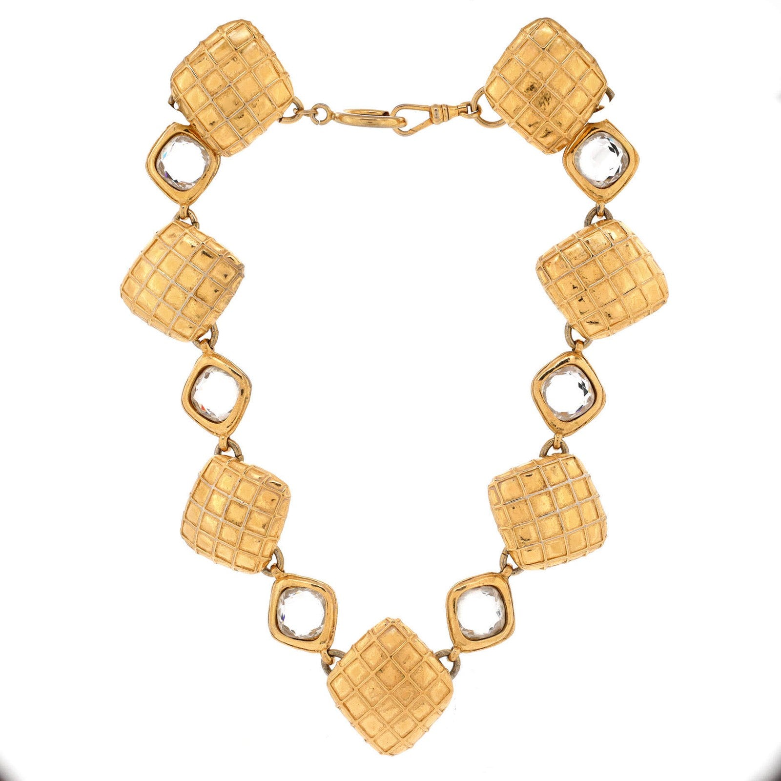 Crystals Chanel Vintage Choker Necklace Quilted Metal with