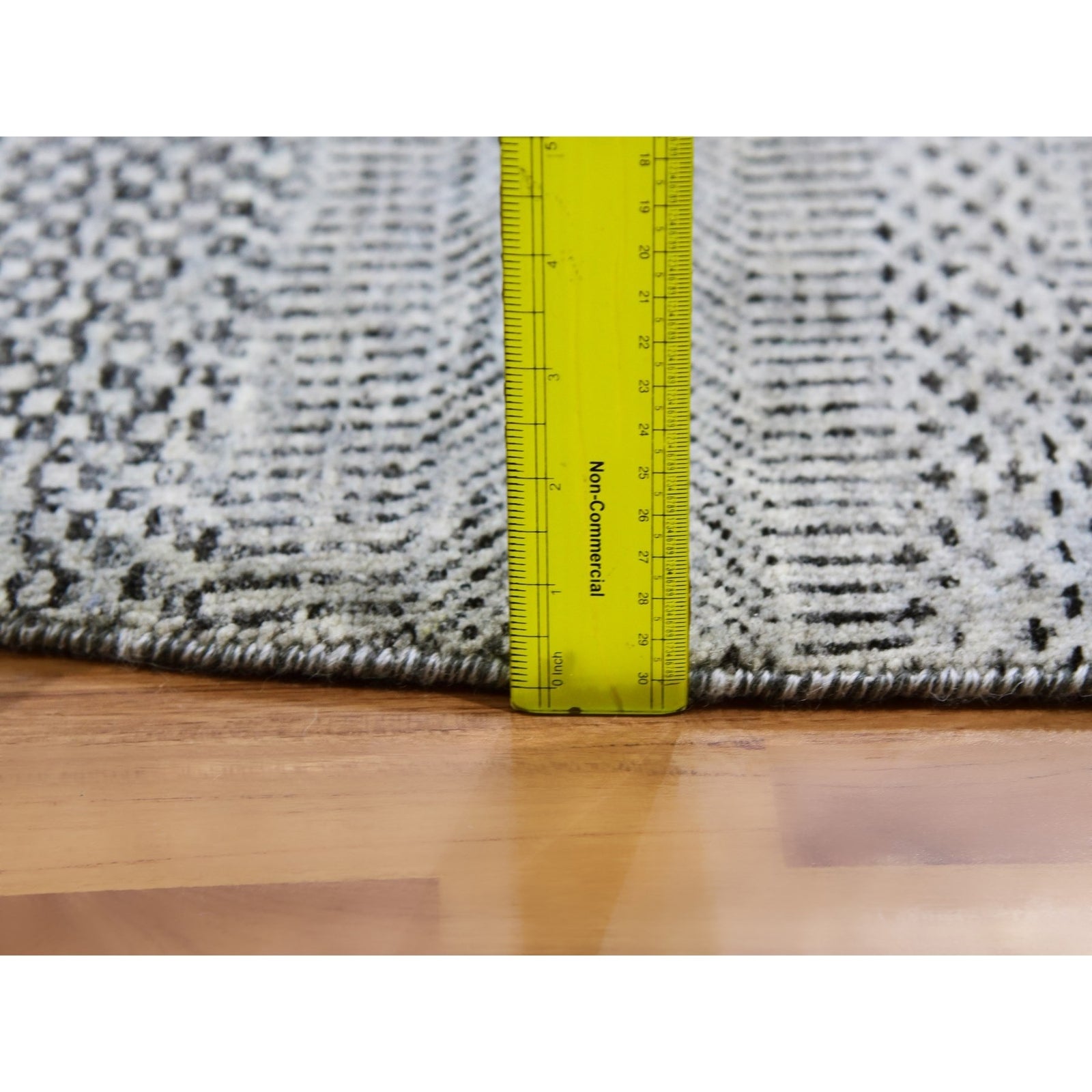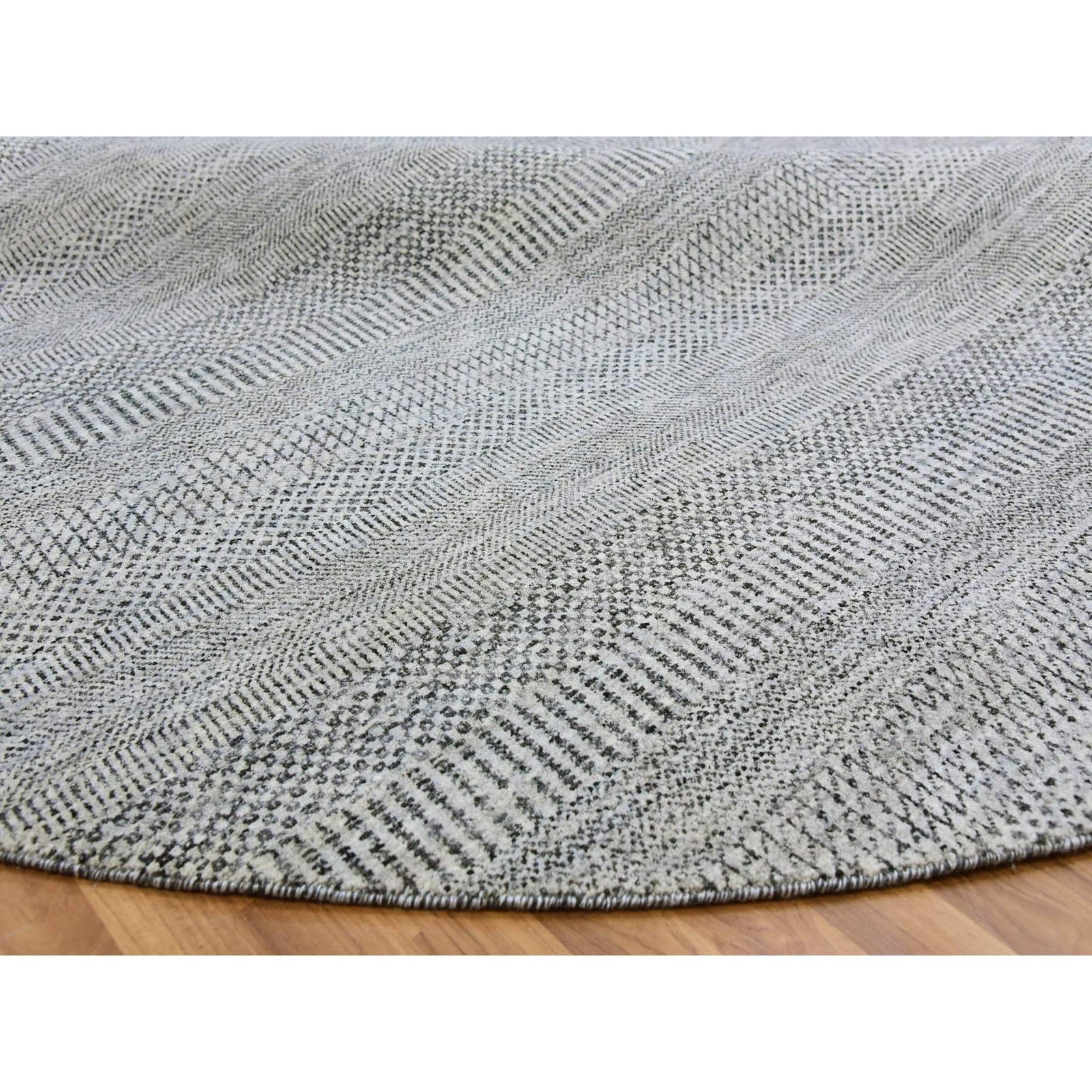 Rug 10'x10' Sea Gray Hand Knotted Round Pure Undyed Wool Grass Design