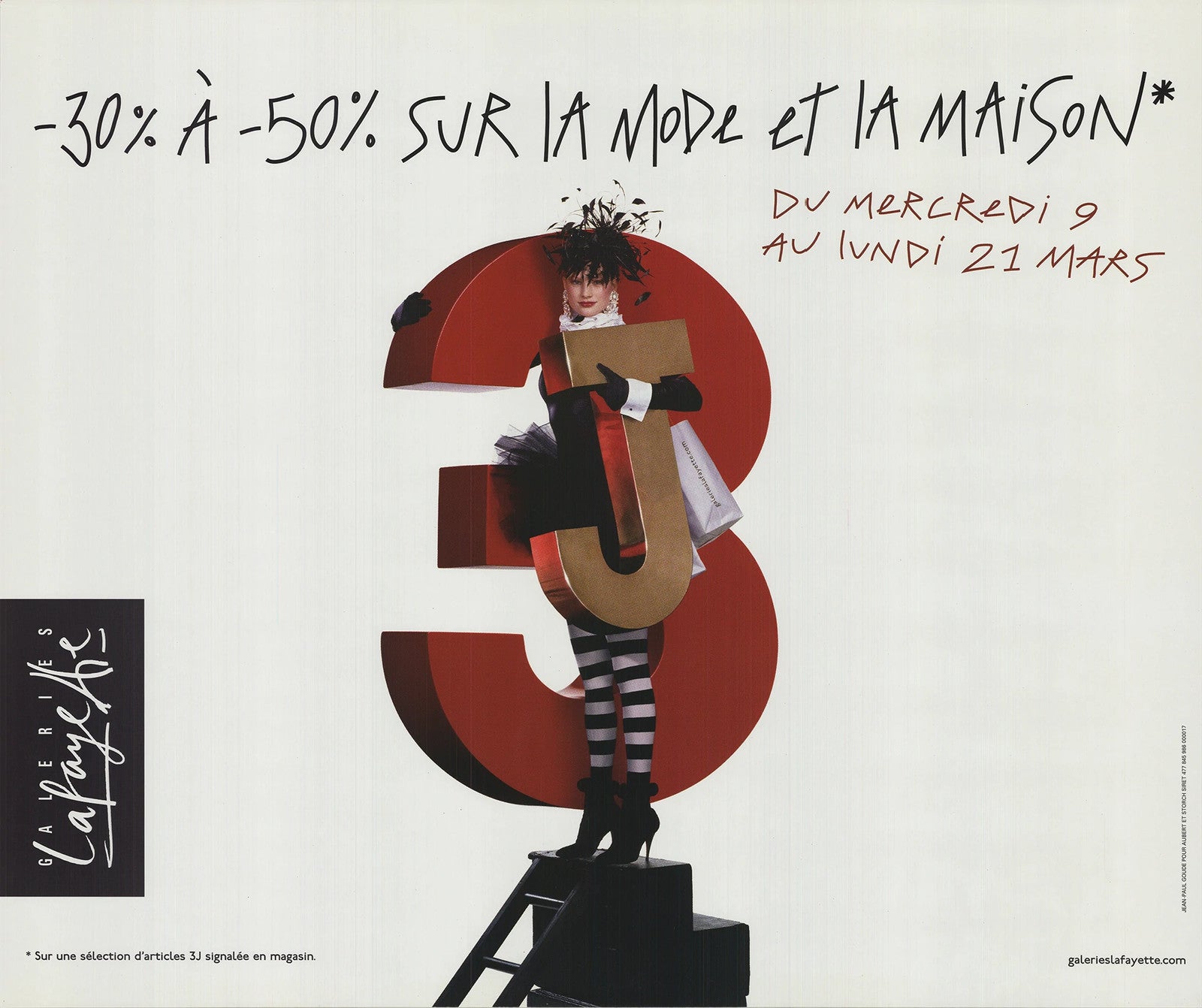 Whit JEAN-PAUL GOUDE Galeries Lafayette 32.5" x 38.75" Offset Lithograph Vintage
