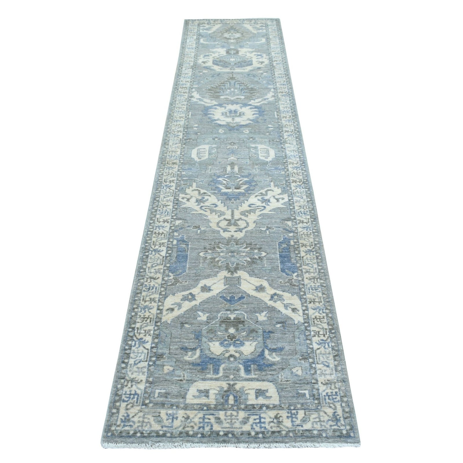 This listing features Rug 2'5"x11'7" Hand Knotted Gray Afghan Peshawar Wool Runner. Item specifics are provided below.