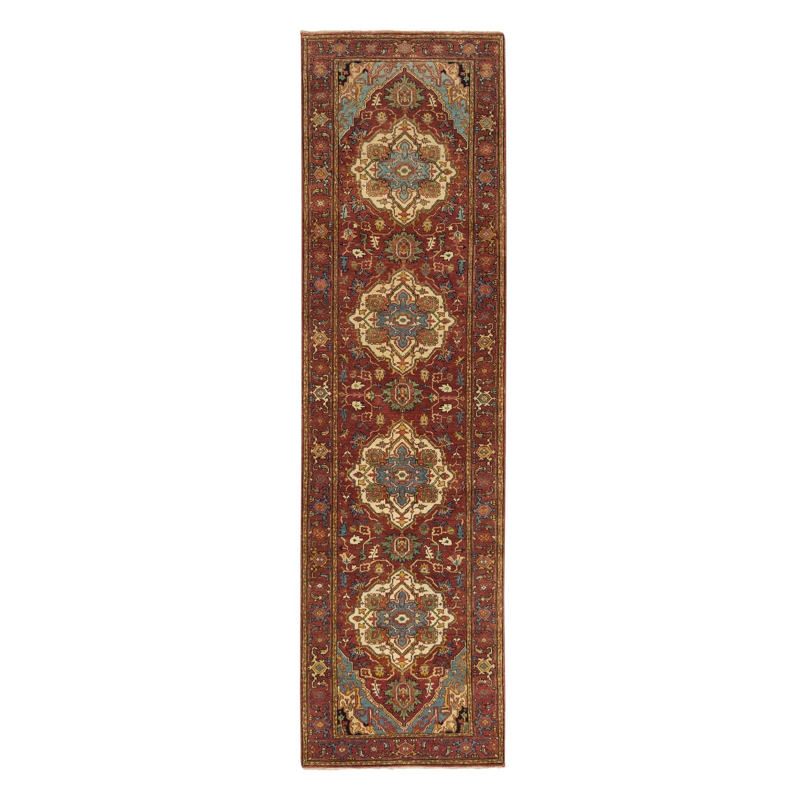 This listing features Rug 2'6"x10'1" Red Hand Knotted Fine Heris Re-Creation Wool Runner. Item specifics are provided below.