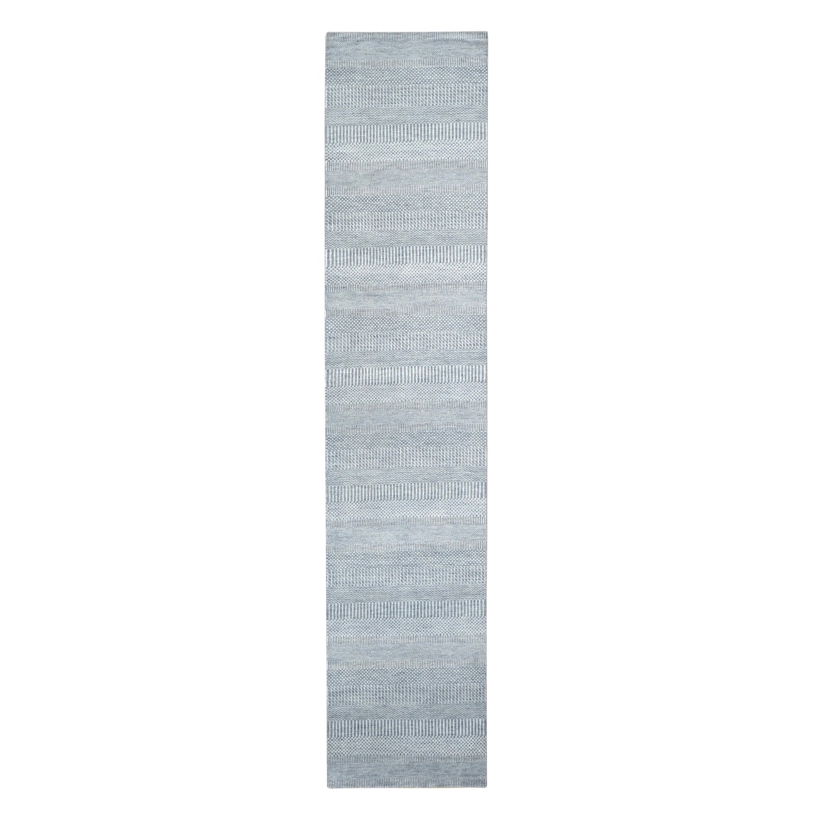 Rug 2'6"x12' Blue Grass Design Hand Knotted Wool and Silk Modern Runner
