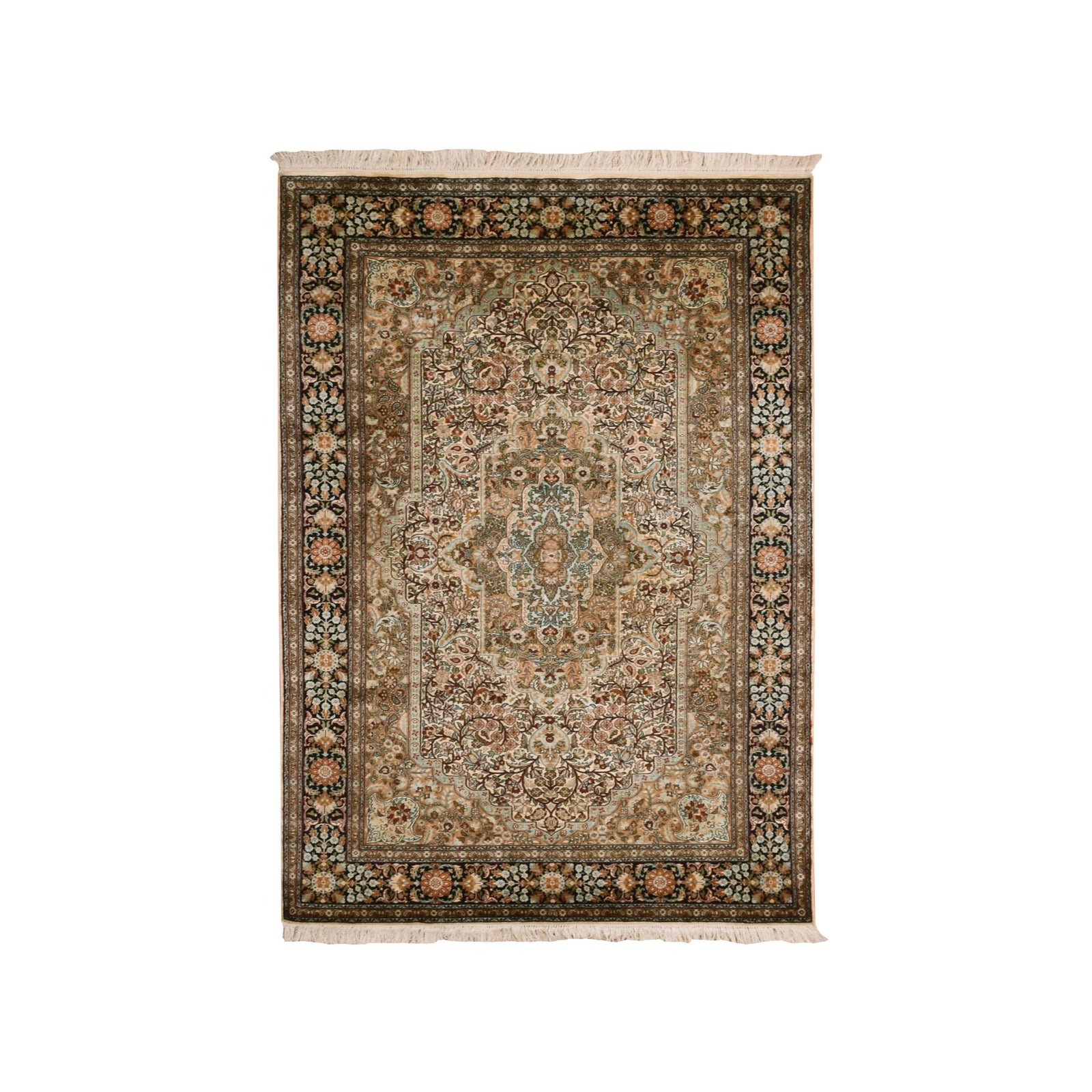 Rug 4'1"x6'1" Tobacco Brown Hand Knotted 100% Silk 400 KPSI Oriental