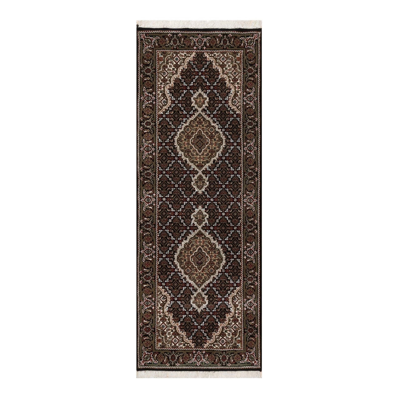 2'5"X6'7" Black Hand Knotted Rug Tebraz Mahi With Medallion Design Wool