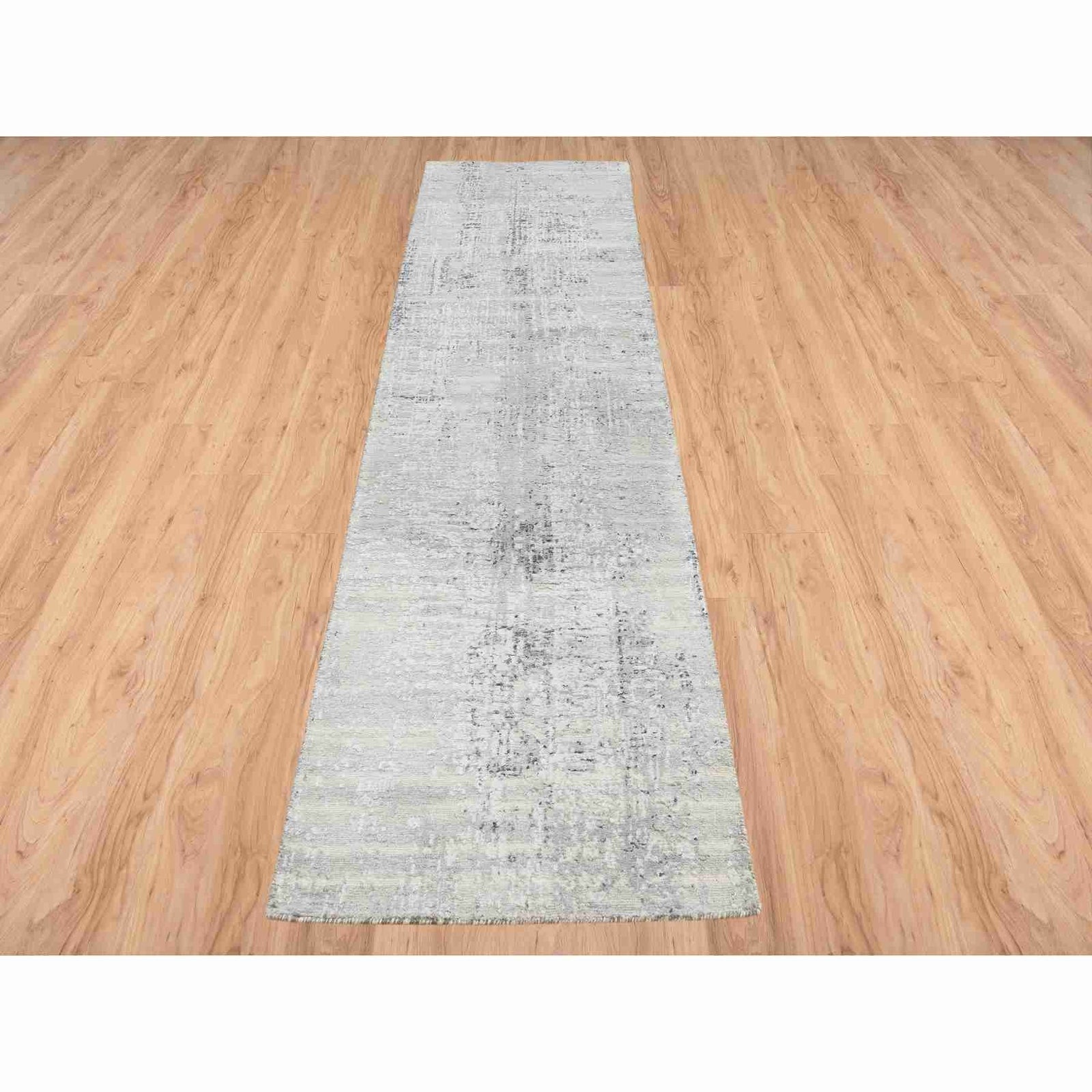 2'6"X10'1" Gray Modern Hand Spun Natural Wool Hand Knotted Runner Rug