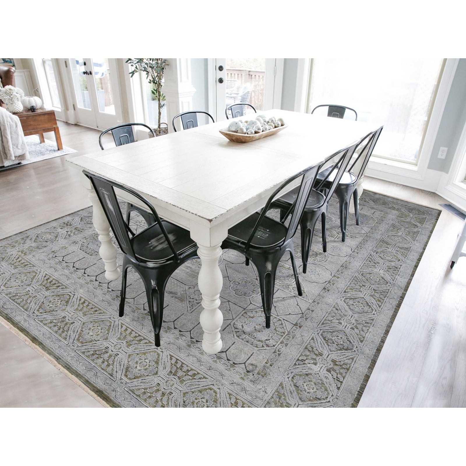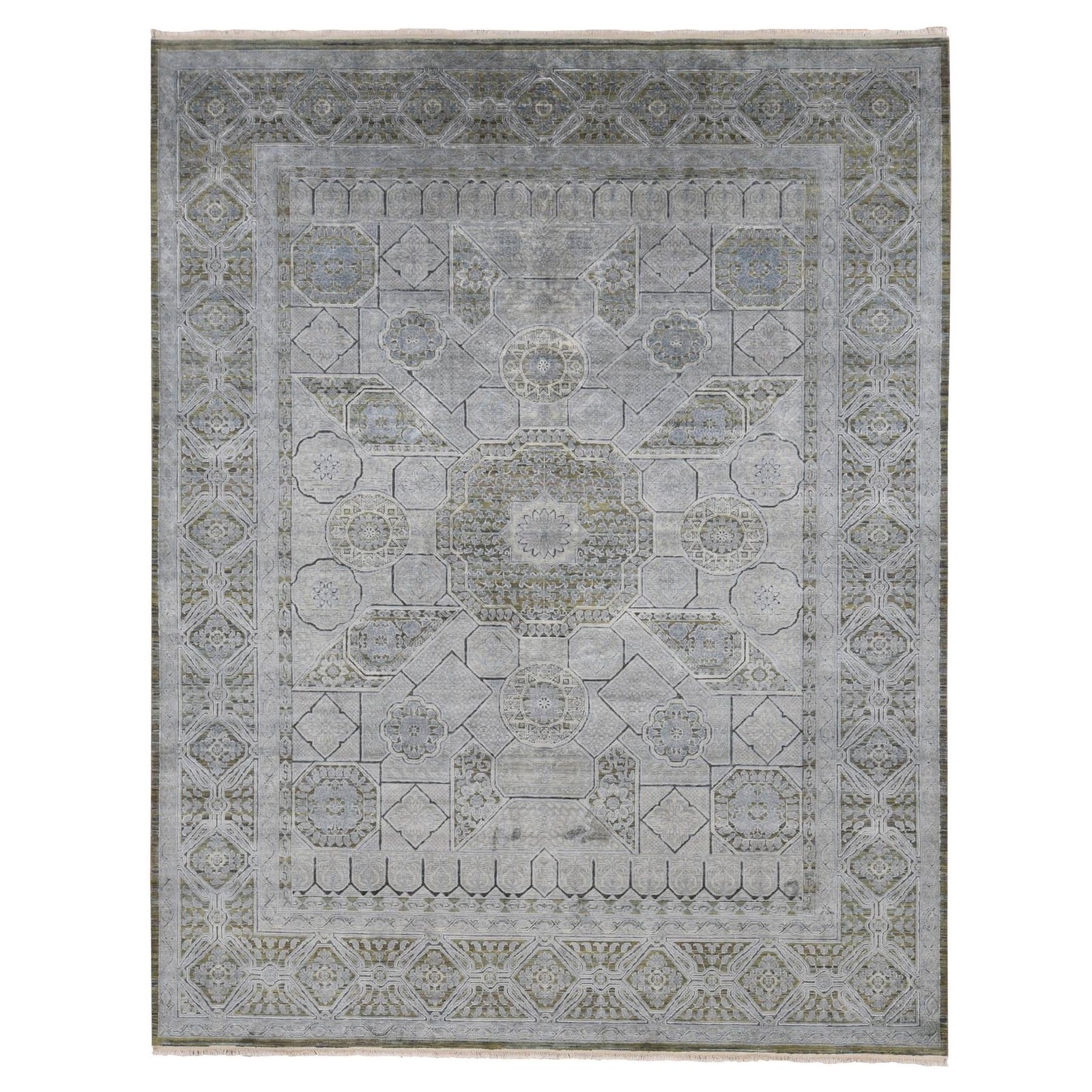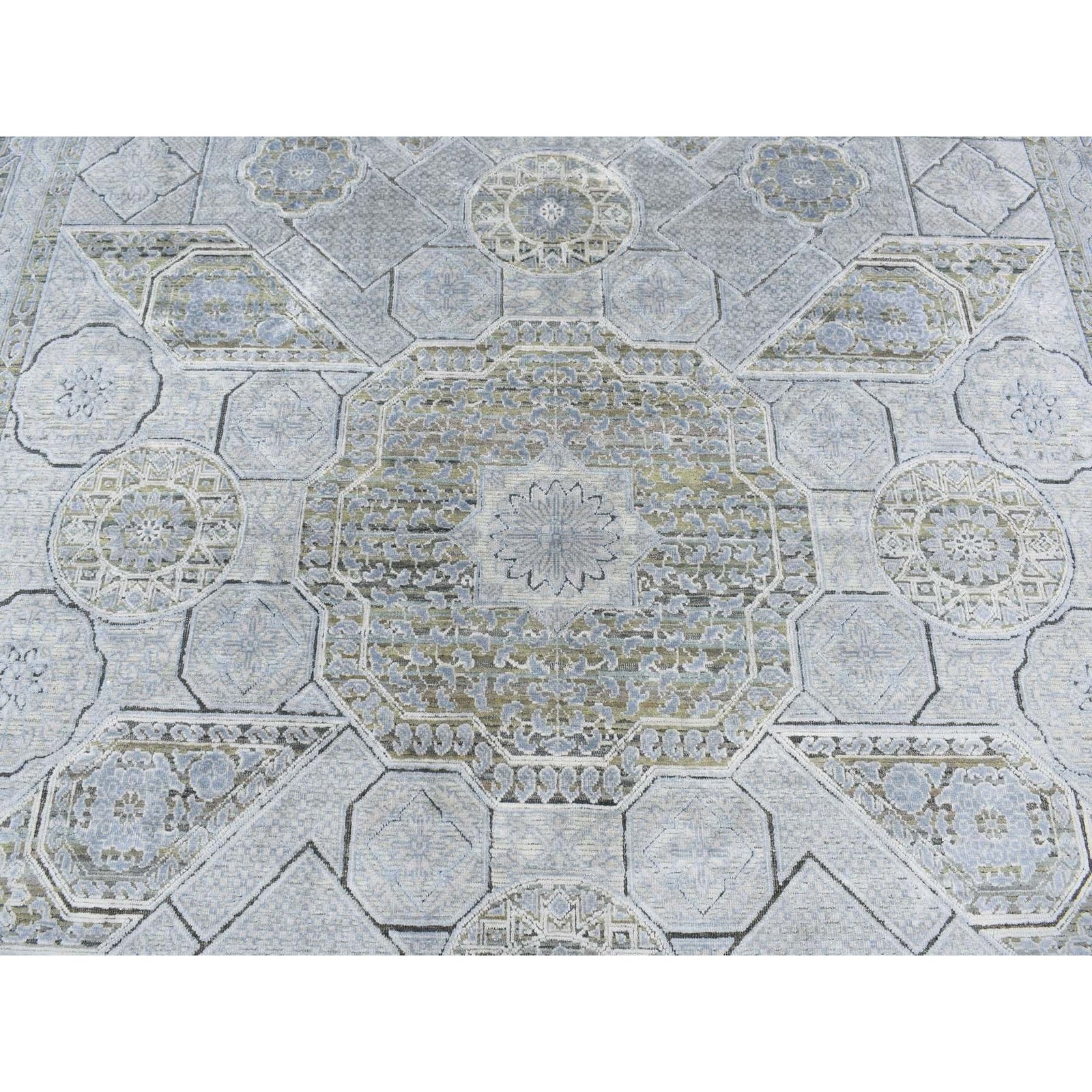 9'X11'7" Cadet Gray Silk With Wool Mamluk Design Hand Knotted Rug