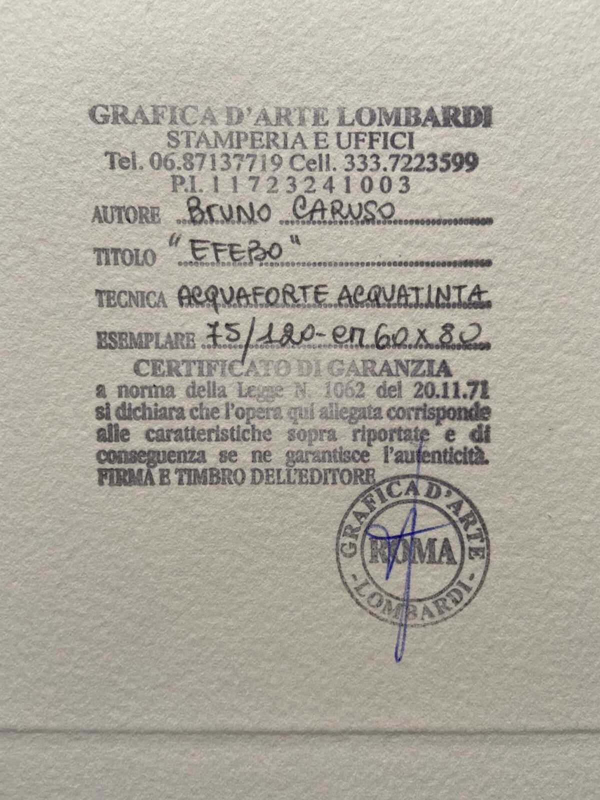 authenticity certificate according to the law of the publisher
