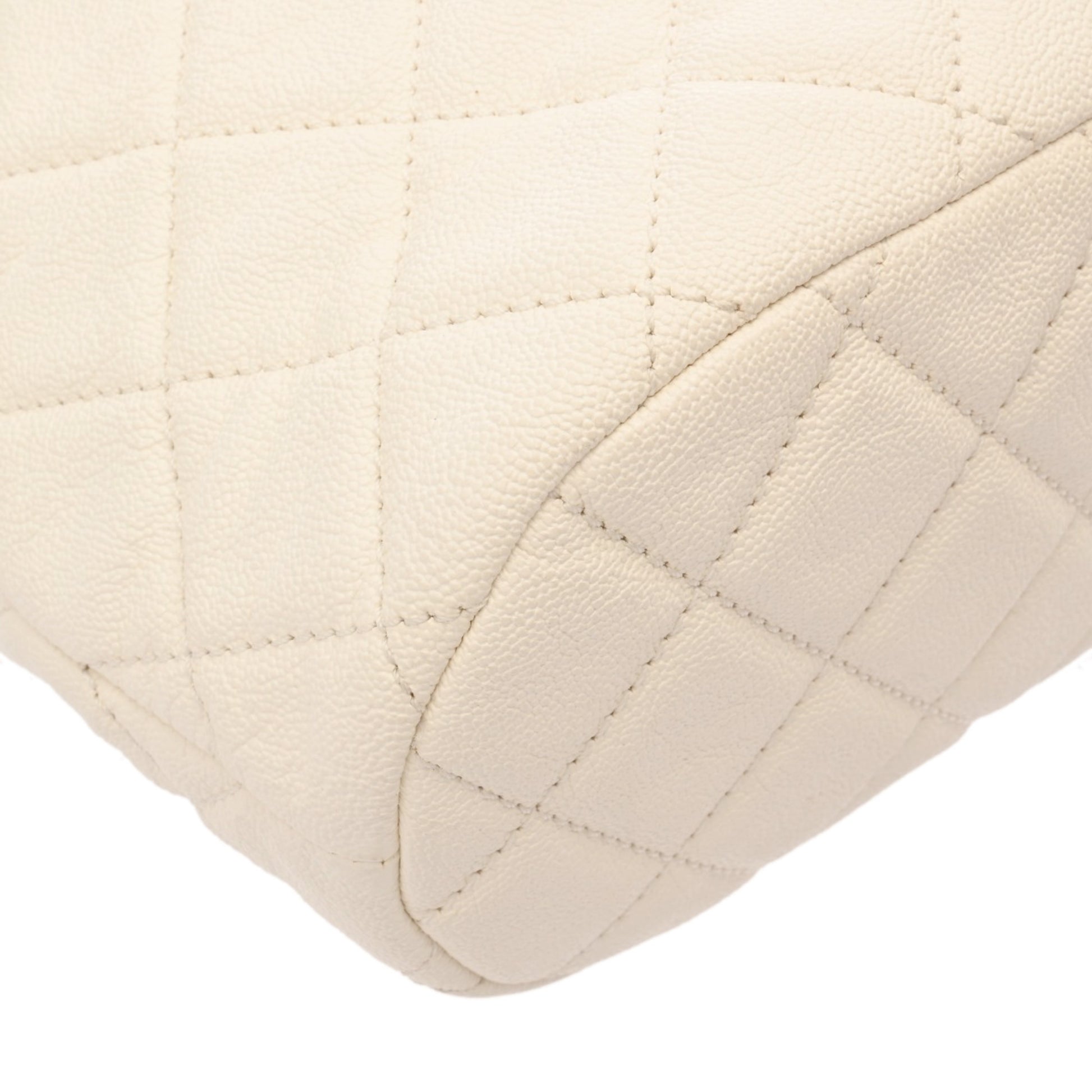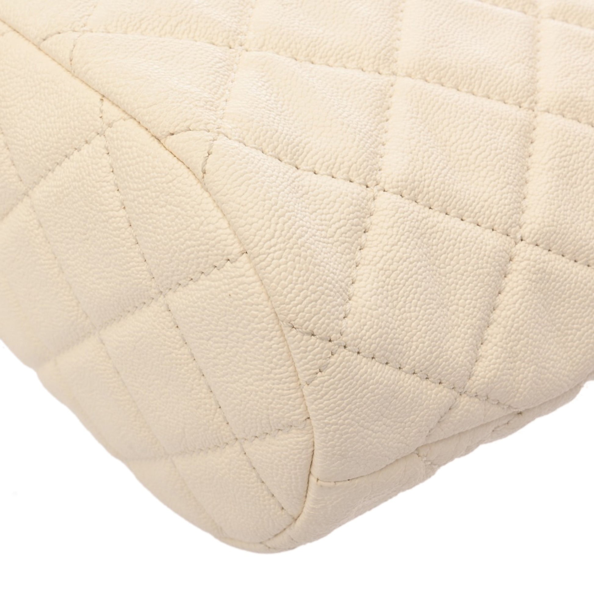 Chanel Matelasse White Women'S Soft Caviar Leather Shoulder Bag