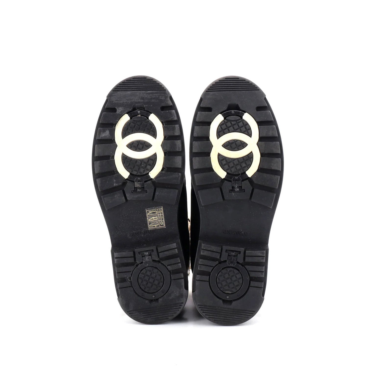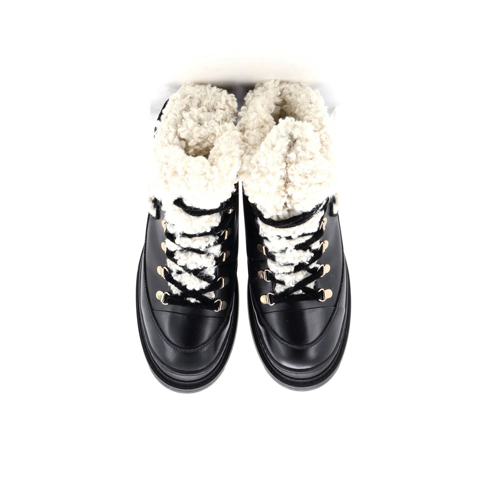 Chanel Women'S Cc Lace-Up Winter Boots Leather And Shearling