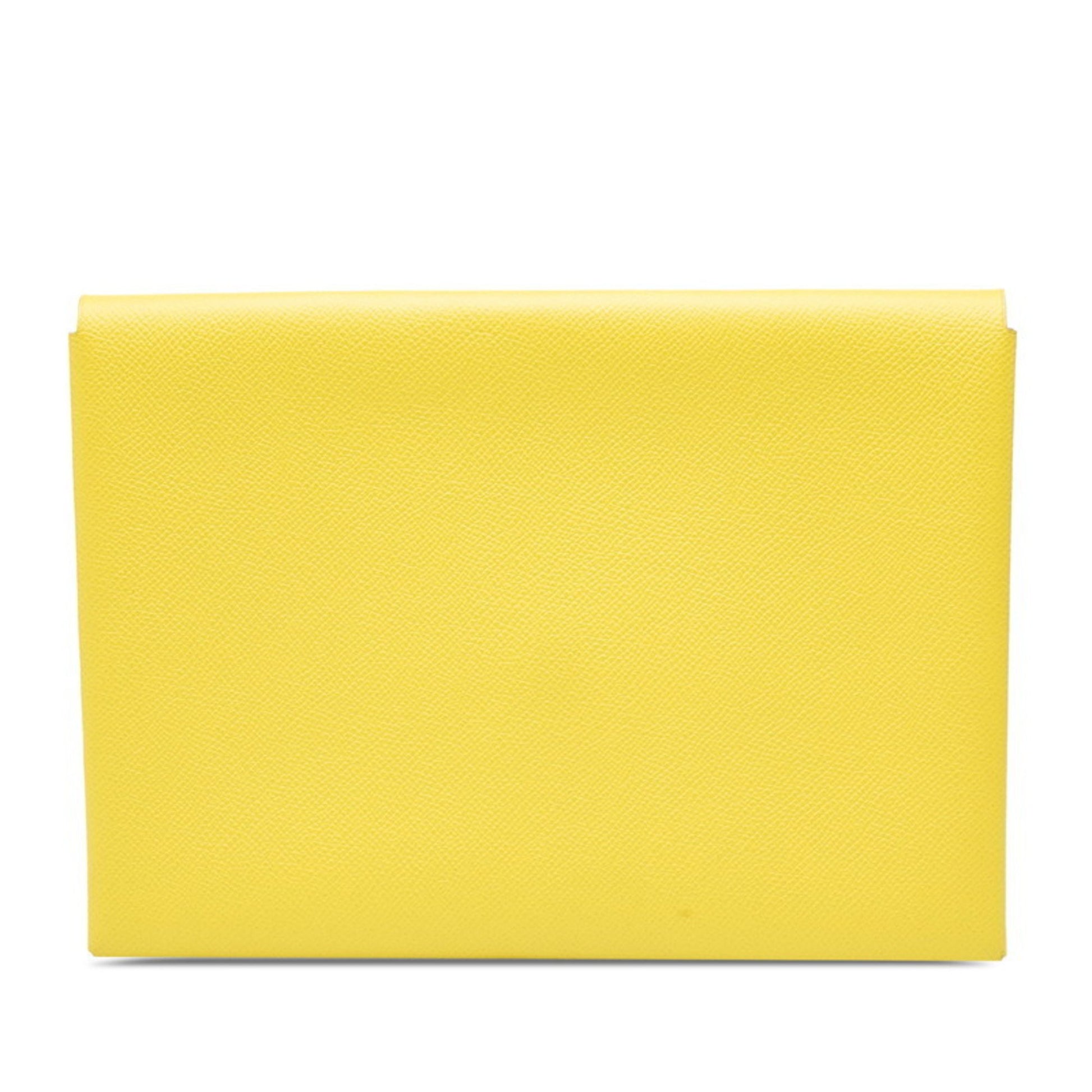 Herms Calvi Gm Clutch Bag Yellow Epsom Leather