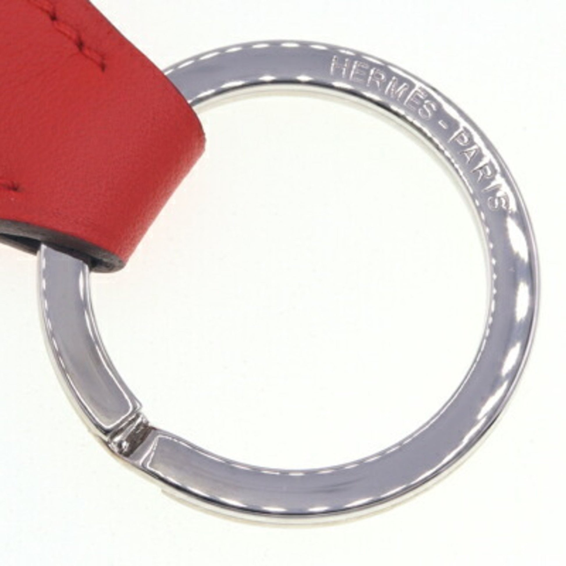 Herms Key Ring Porte Cles Tab Capucines Swift Leather Keychain Bag Charm Red