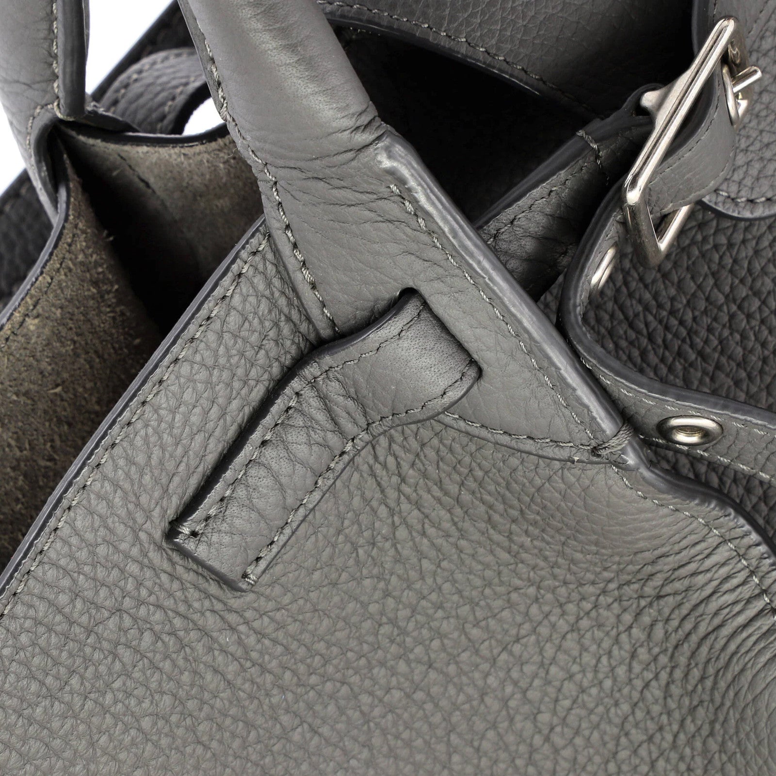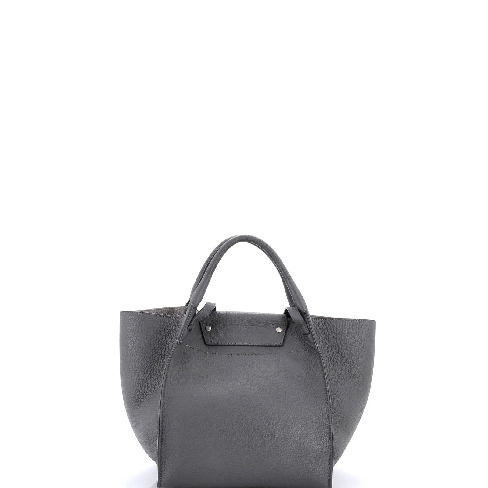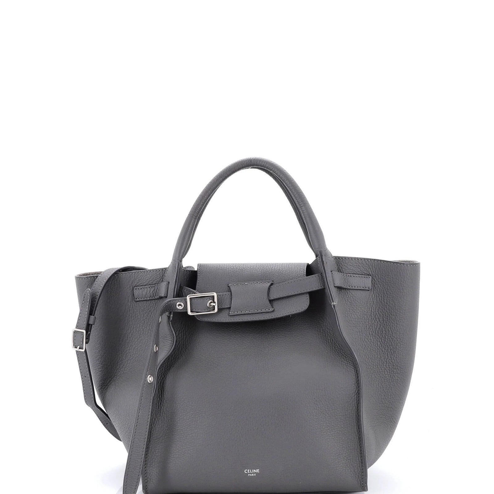 A sleek and sophisticated Celine small bag, crafted from rich grained calfskin leather in a timeless gray hue. With its classic top handle and spacious interior, this Big Bag is perfect for everyday use, while the aged silver hardware adds a touch of understated elegance. Despite minor signs of wear, this pre-owned Celine remains a stylish and practical investment for any fashion-conscious collector.