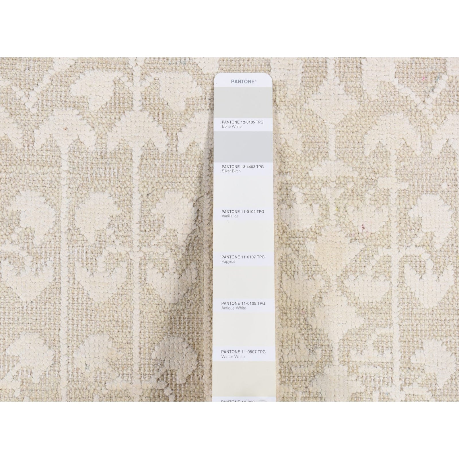 2'6"X11'8" Ivory Hand Knotted Tone On Tone Silk With Wool Runner Rug