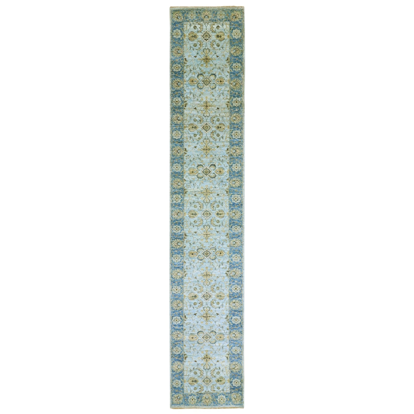 2'6"X14' Arctic Blue Wool Hand Knotted Shah Abbas Runner Oriental Rug