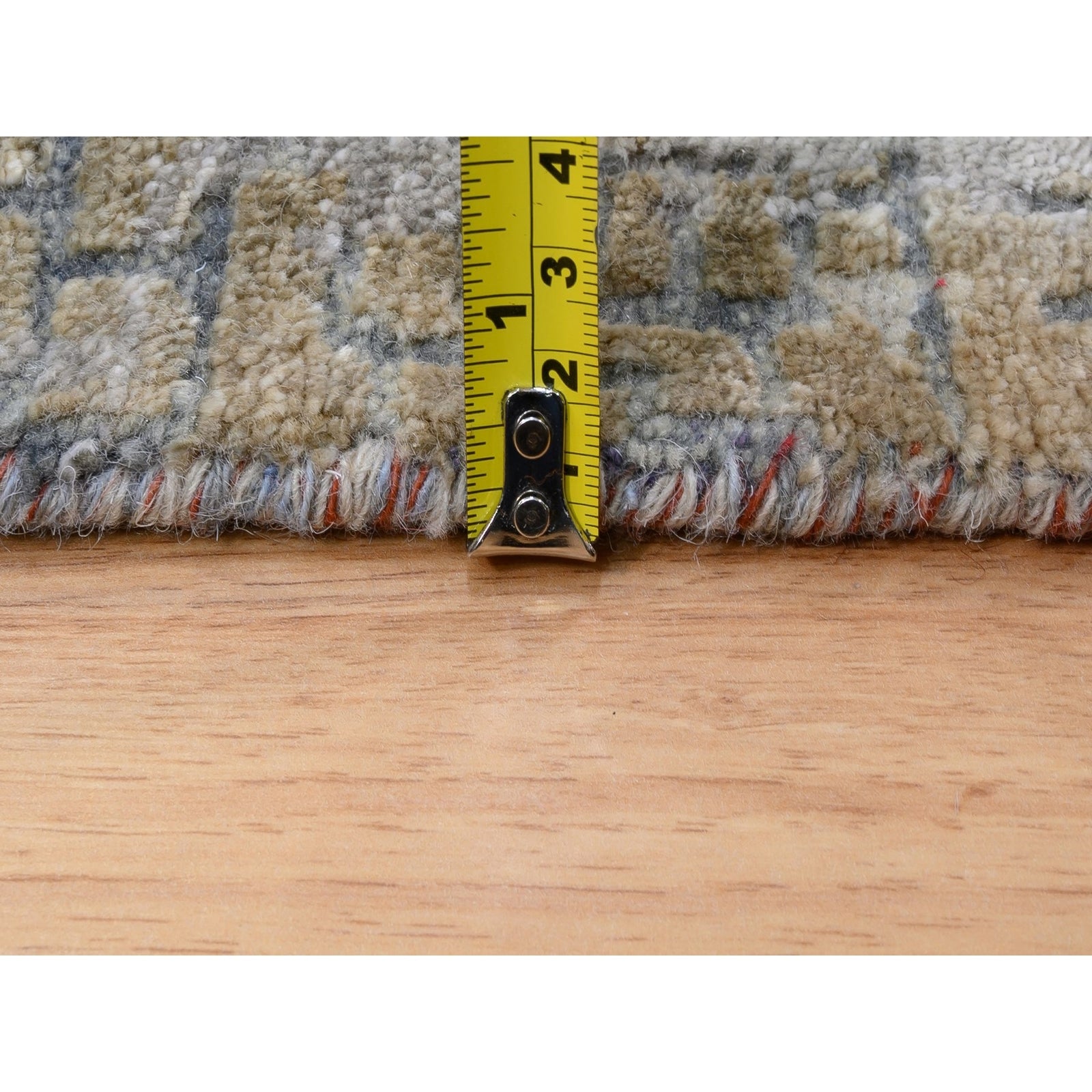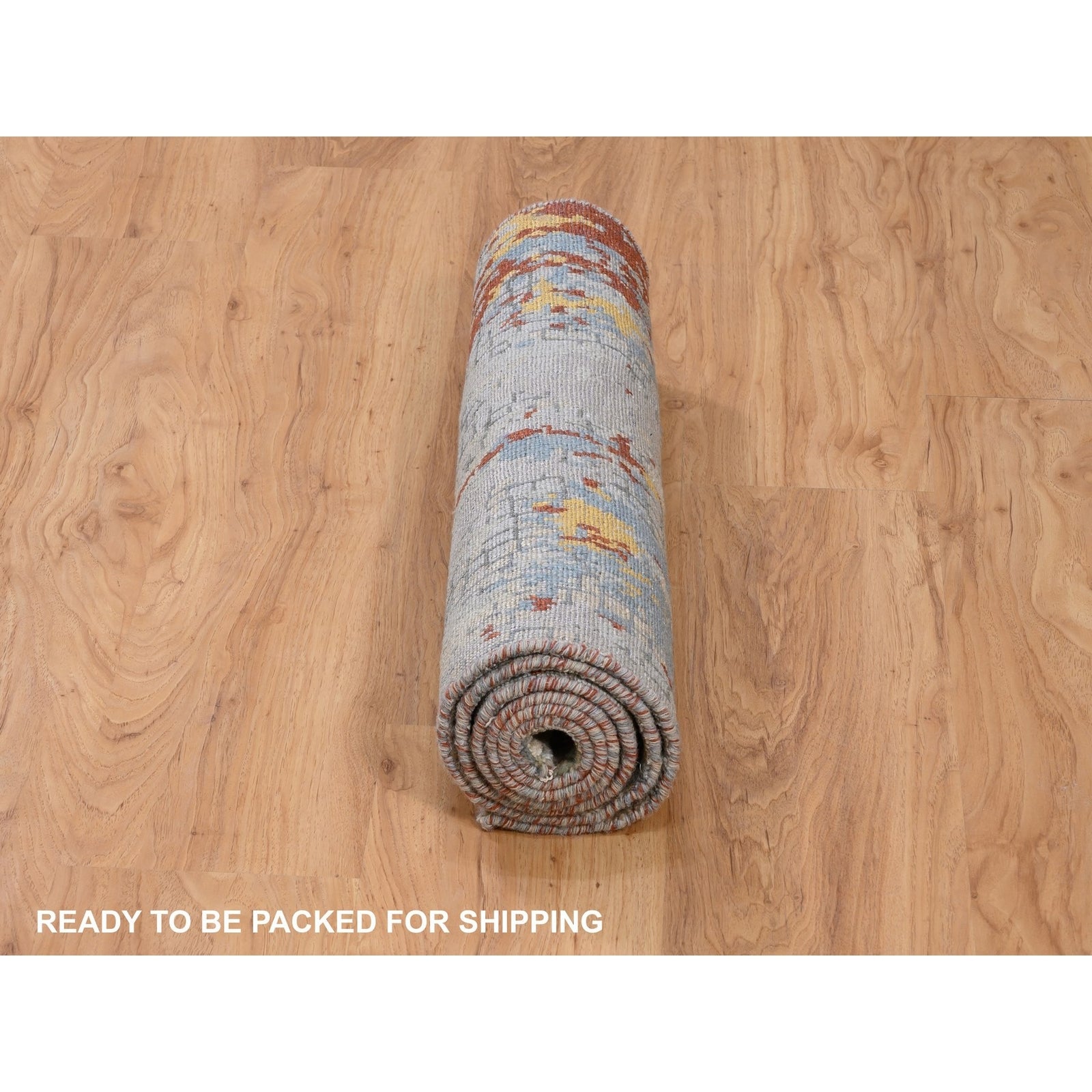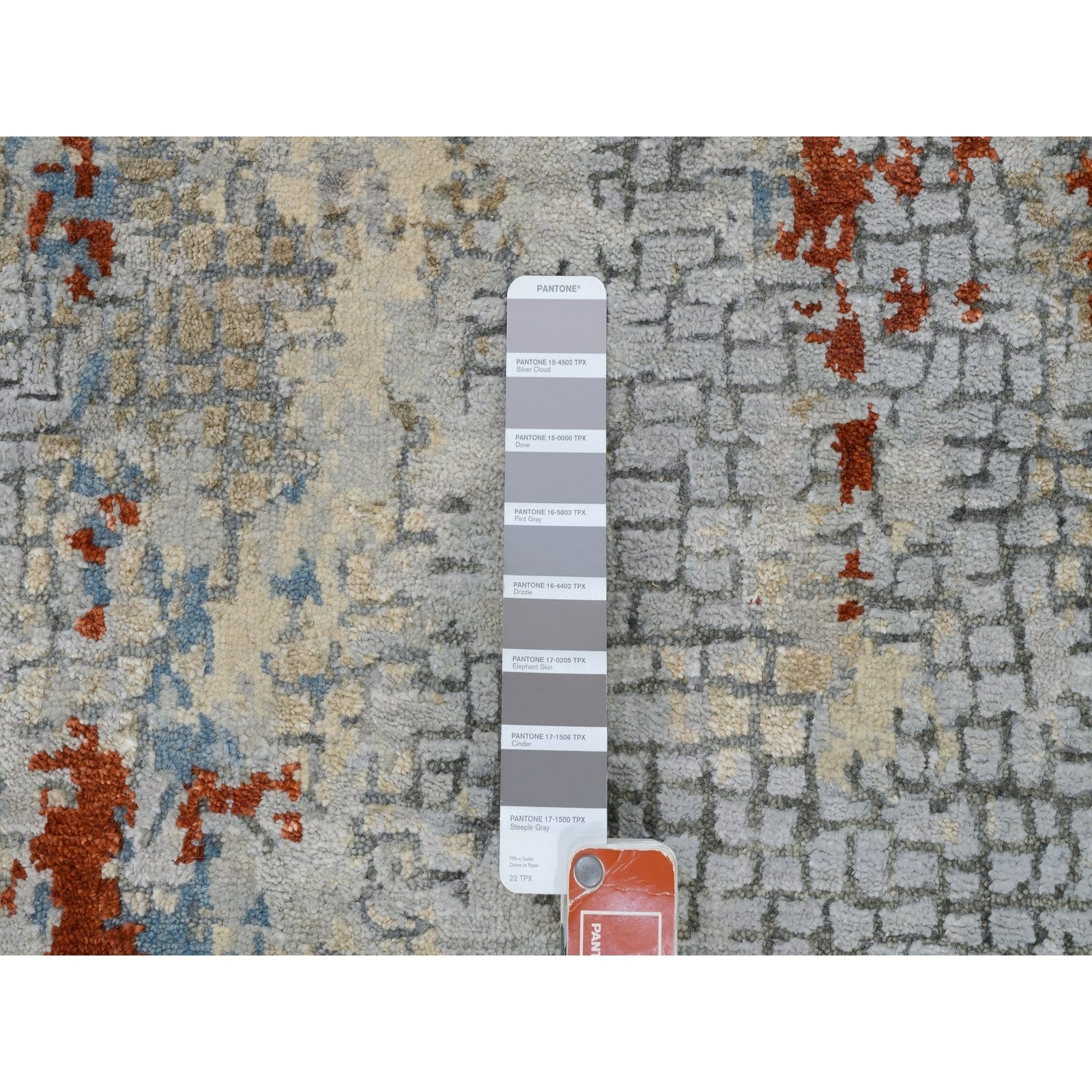 2'6"X5'10" Wool And Silk Abstract Fire Mosaic Design Hand Knotted Rug