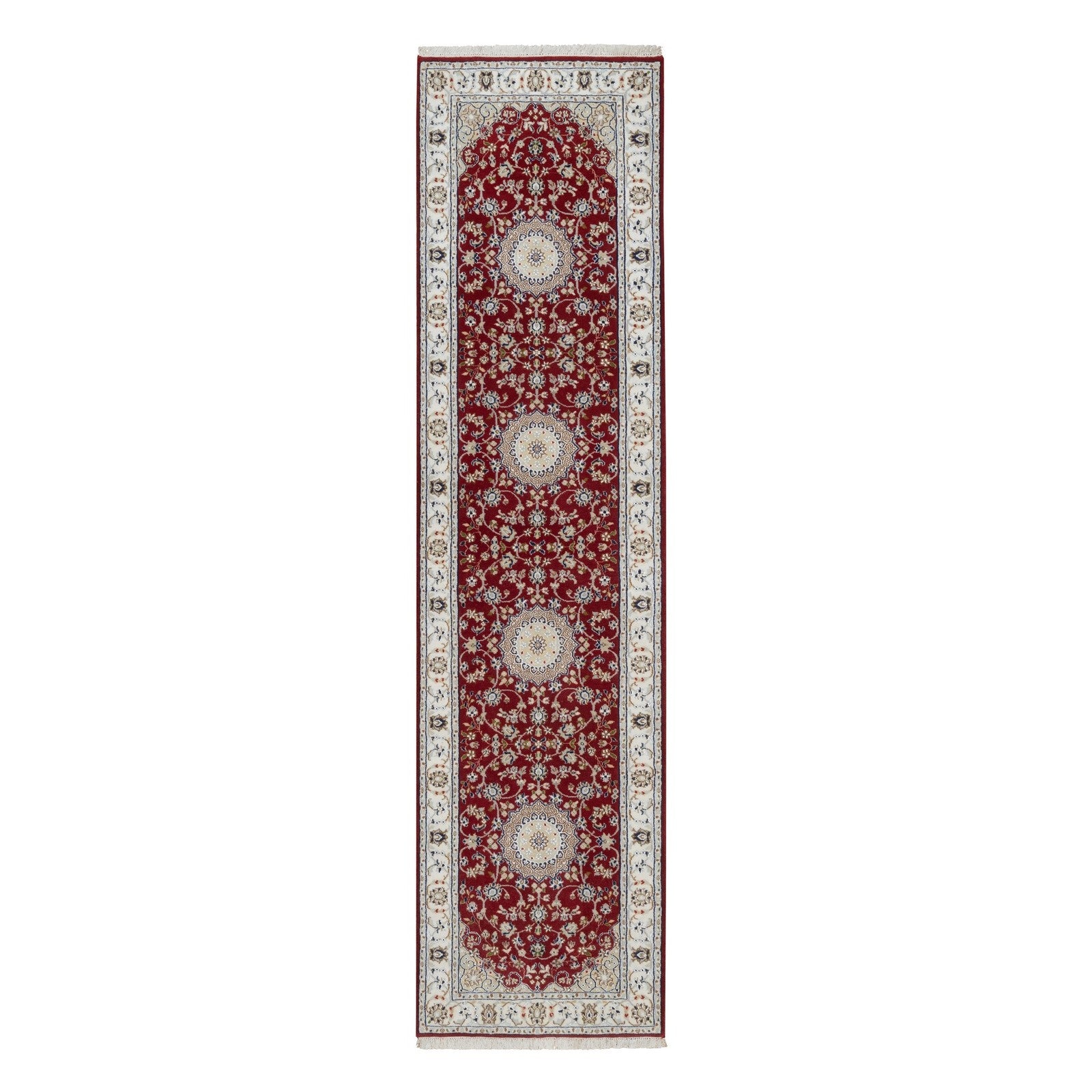 2'7"X10'3" Red Hand Knotted Nain Medallion Design Wool & Silk Runner Rug