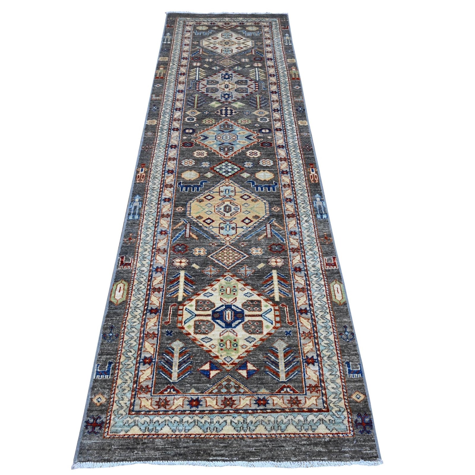 2'7"X9'6" Zombie Gray Fine Aryana Vegetable Dyes Runner Oriental Rug