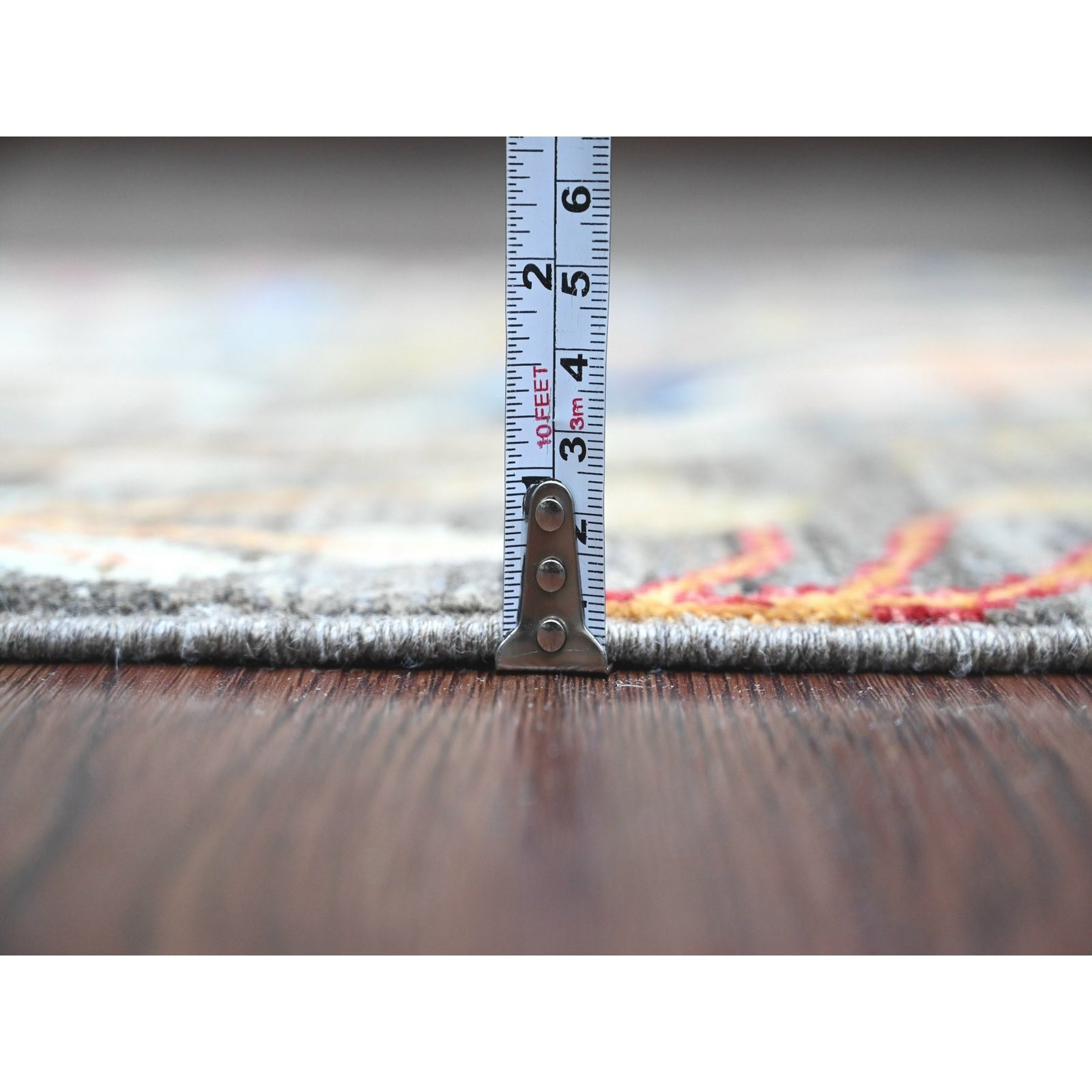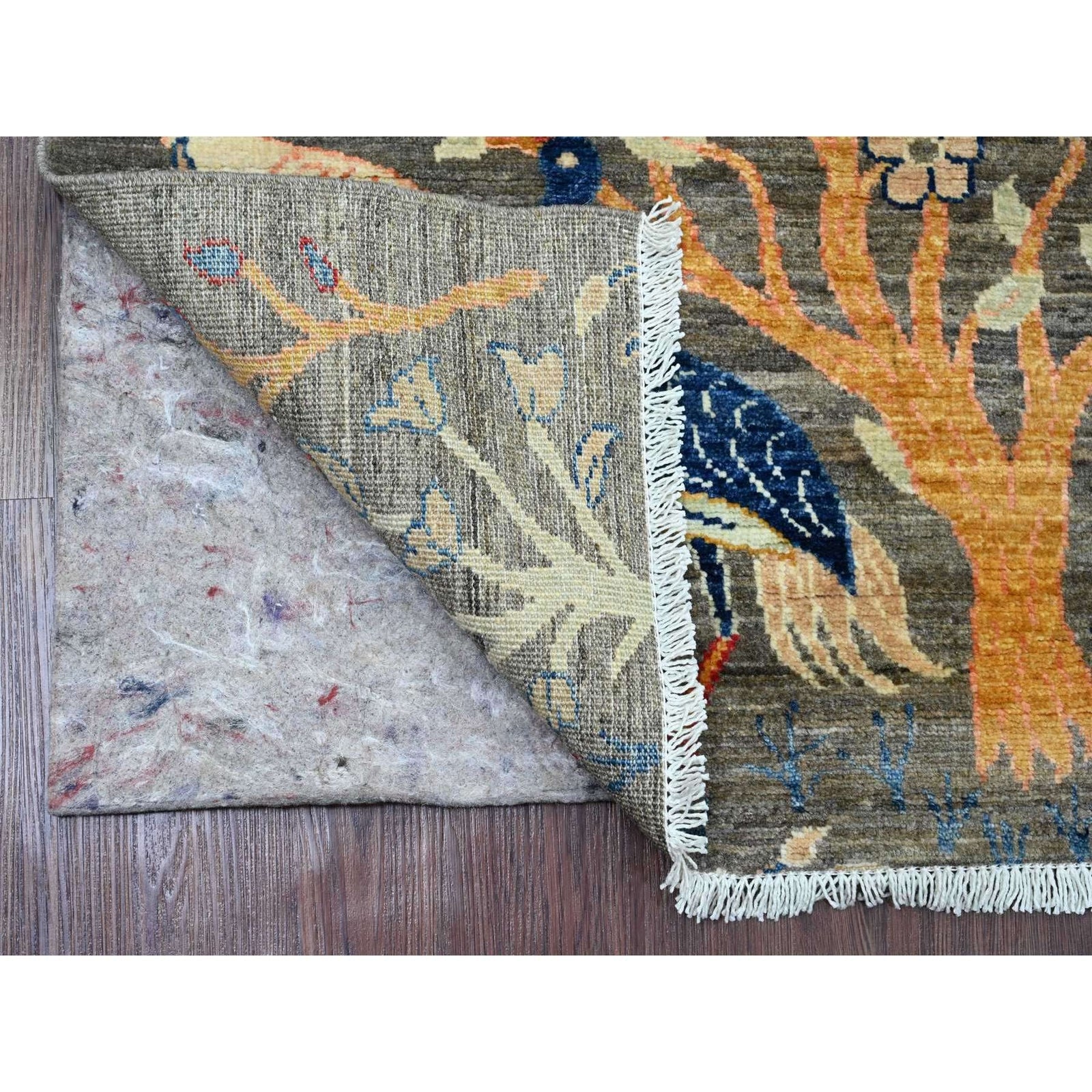 2'8"X5'8" Gray Peshawar Birds Design Hand Knotted Soft Wool Runner Rug
