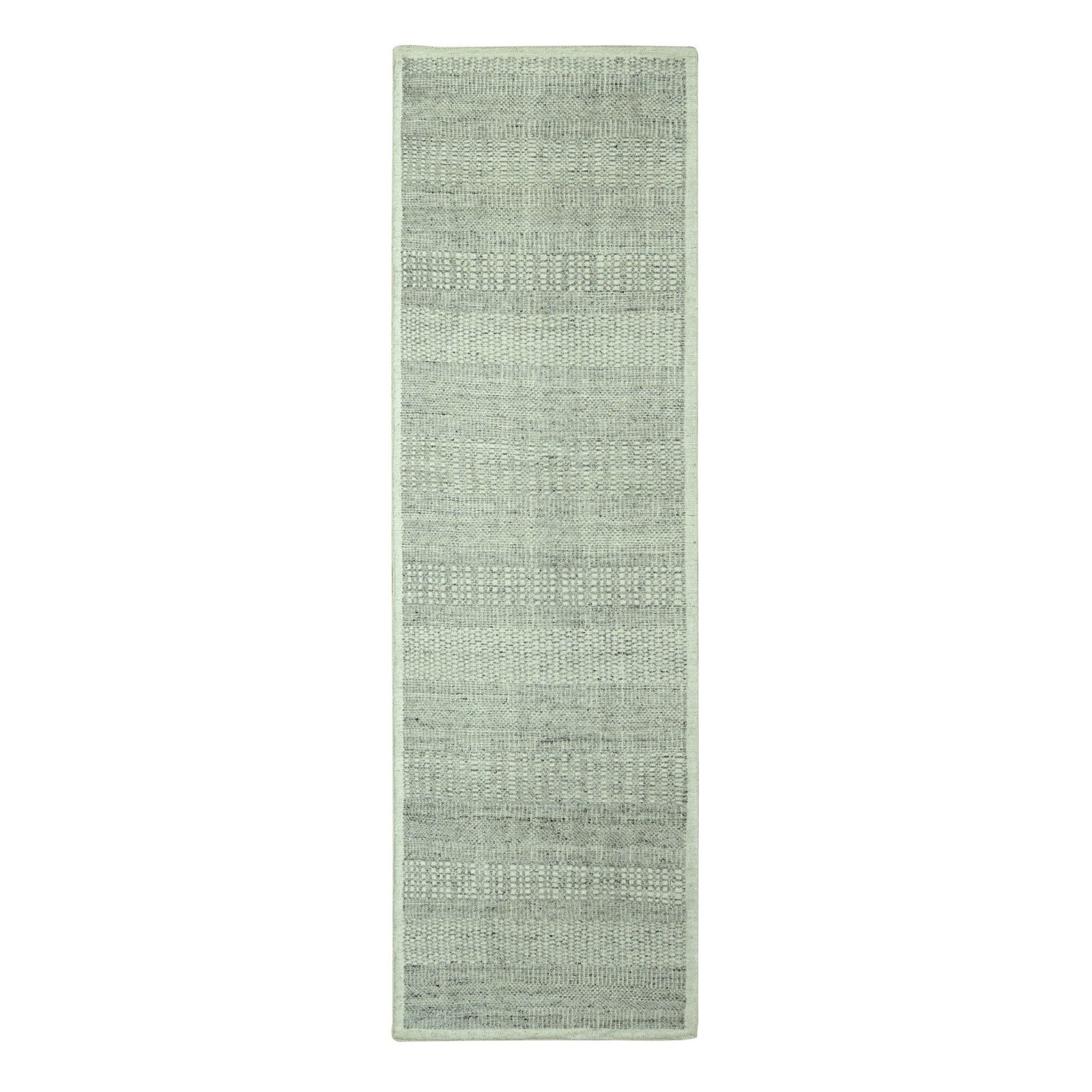 2'8"X6'3" Gray 100% Wool Rug Hand Knotted Oxidized Grass Design Runner