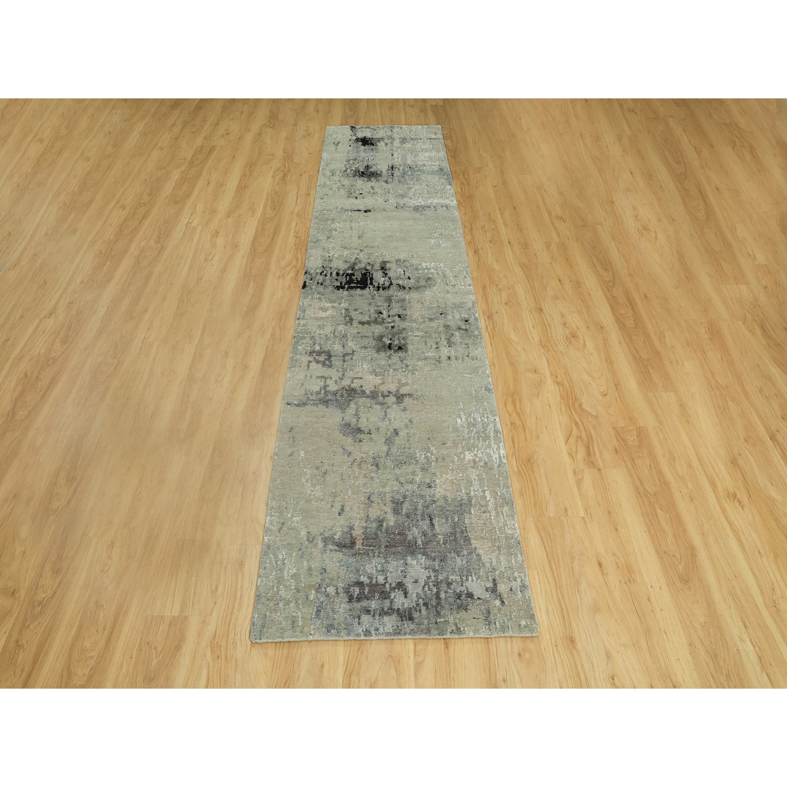 2'9"X12' Silver Blue Wool & Silk Modern Abstract Design Runner Rug