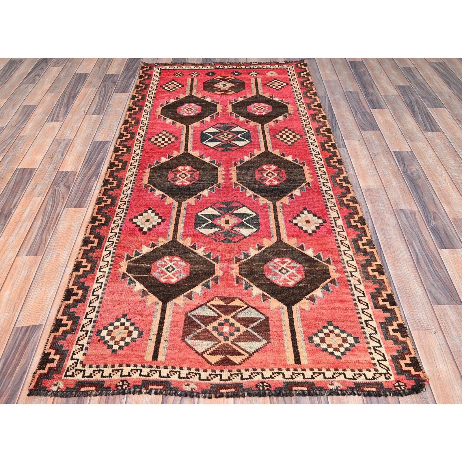 3'5"X6'10" Red Evenly Worn Wool Hand Knotted Oriental Rug