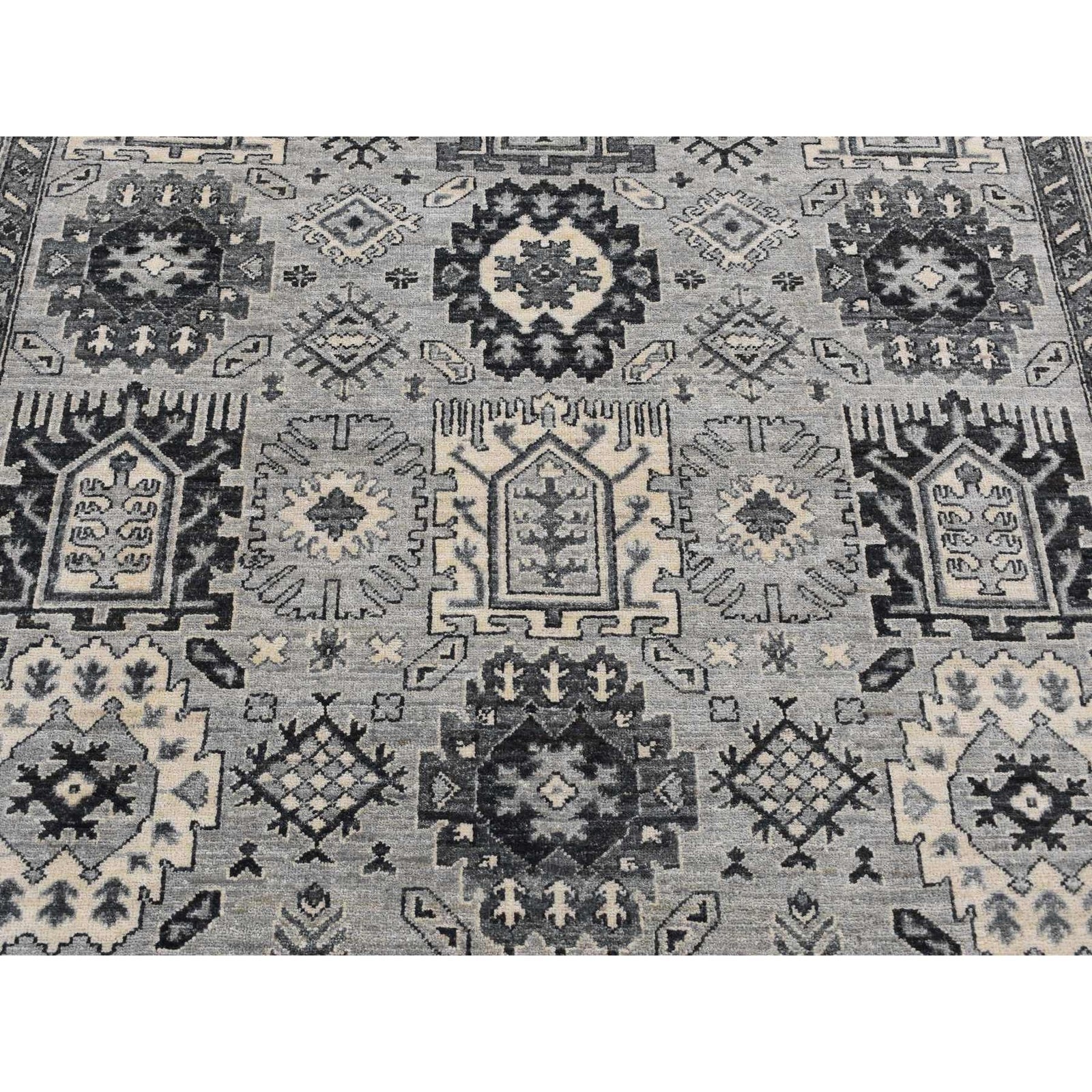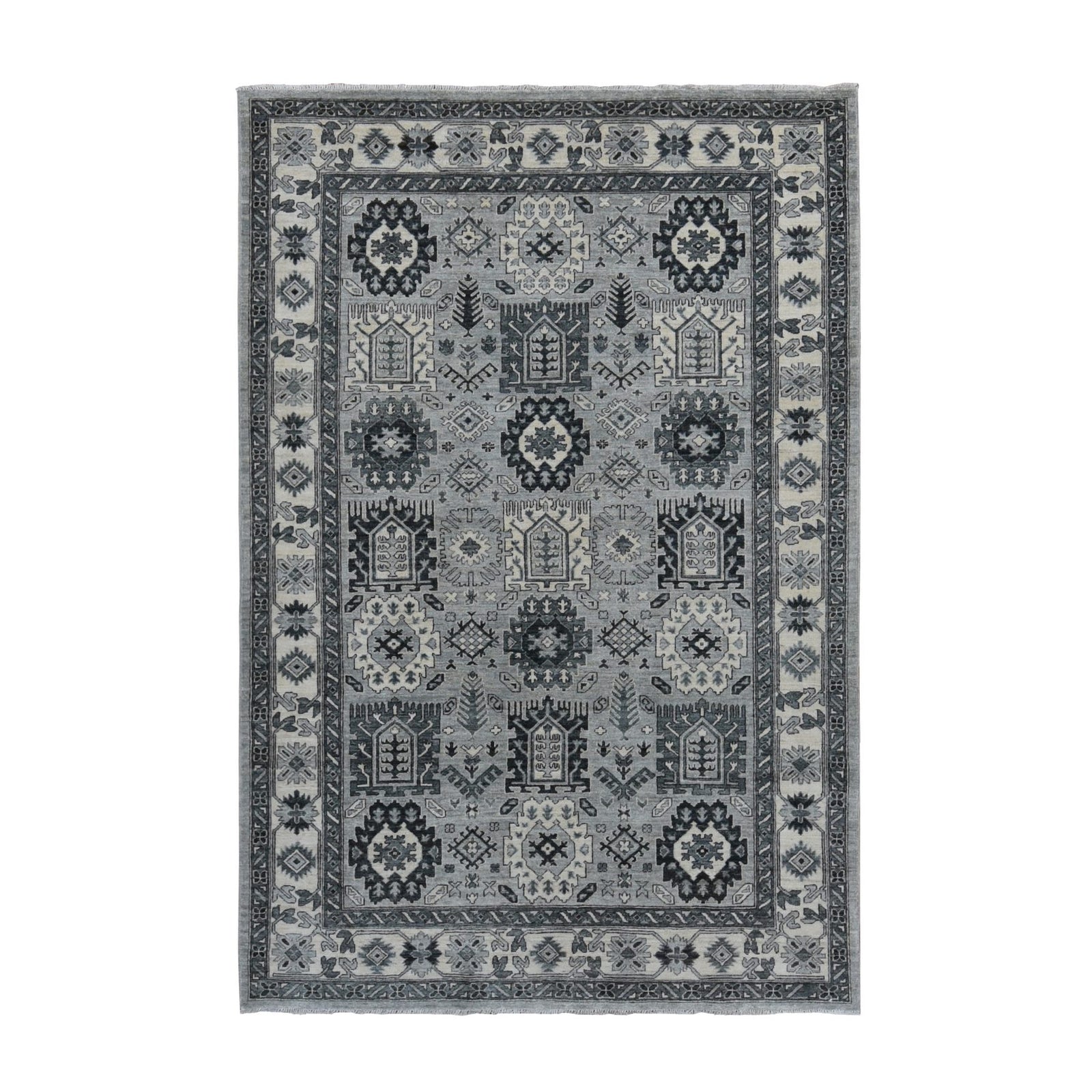 6'2"X9'2" Gray Pure Wool Hand Knotted Peshawar With Karjihooz Design Rug