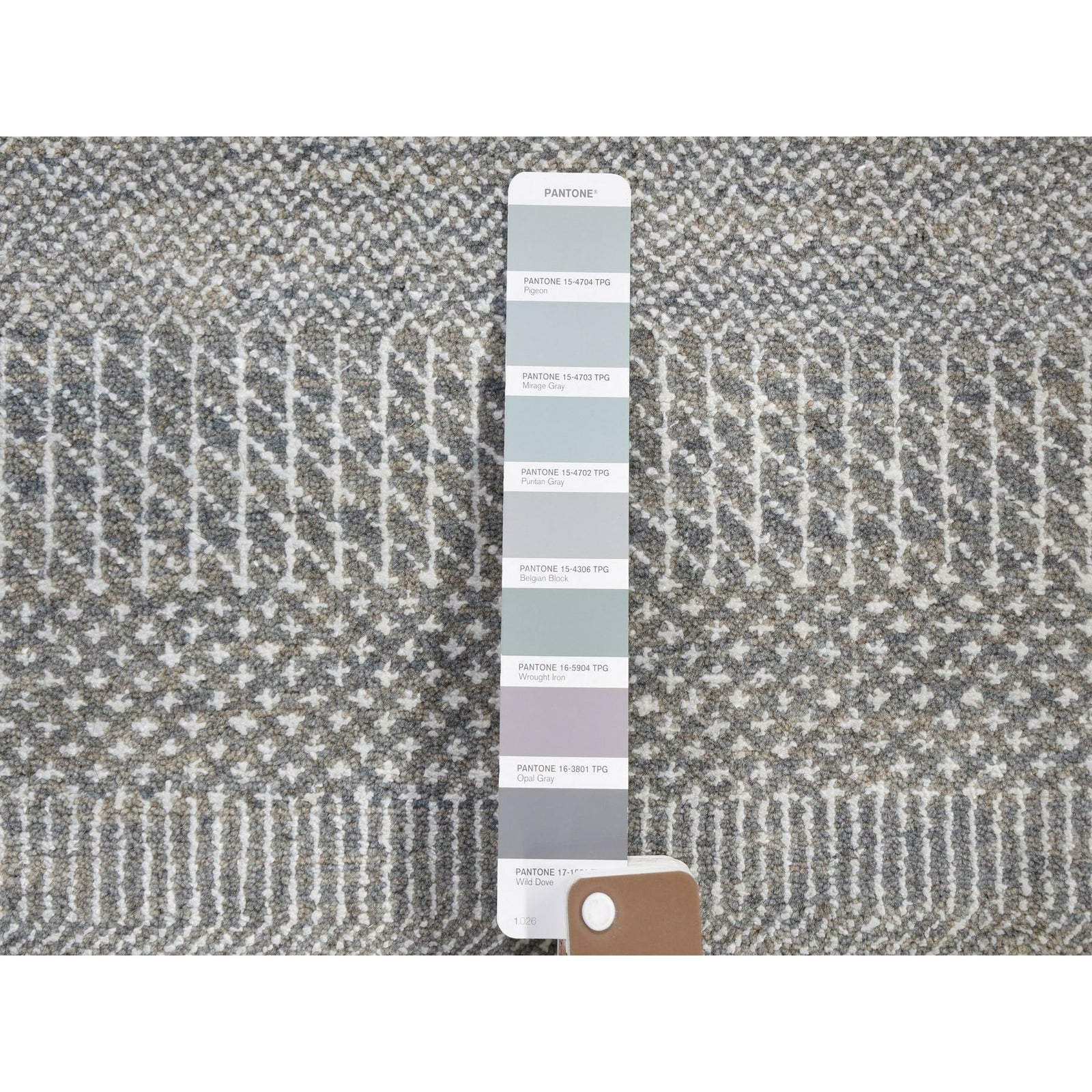 6'X6' Gray Grass Design Wool And Silk Hand Knotted Round Oriental Rug
