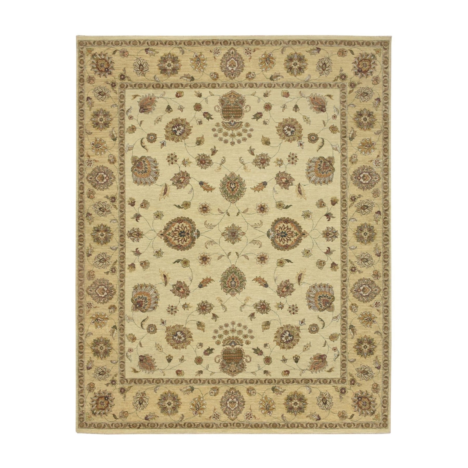 8'X10' Ivory Hand Knotted Agra Ziegler Design Leaf Pattern Pure Wool Rug