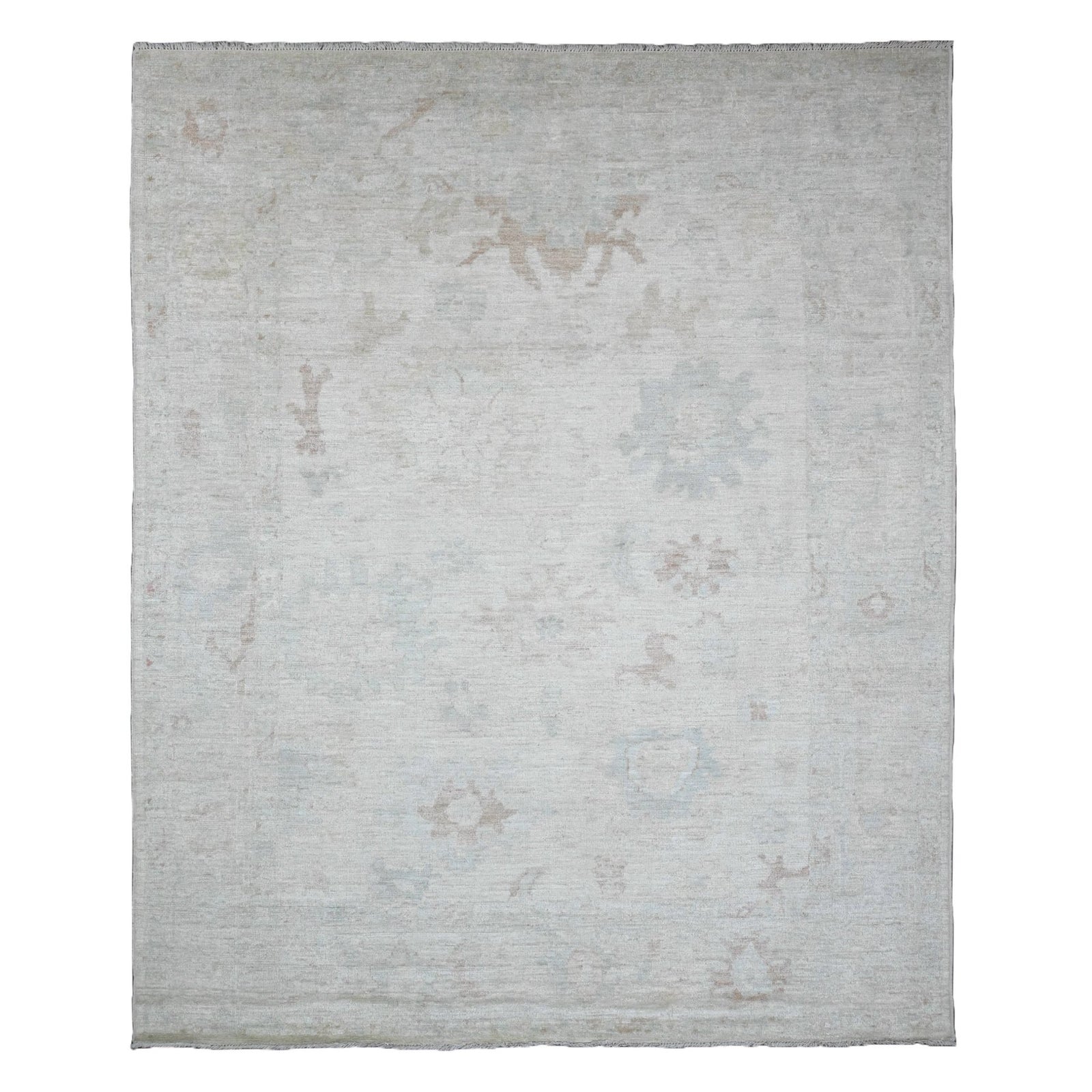 8'X9'7" Misty Gray Afghan Angora Oushak Pure Wool Hand Knotted Rug