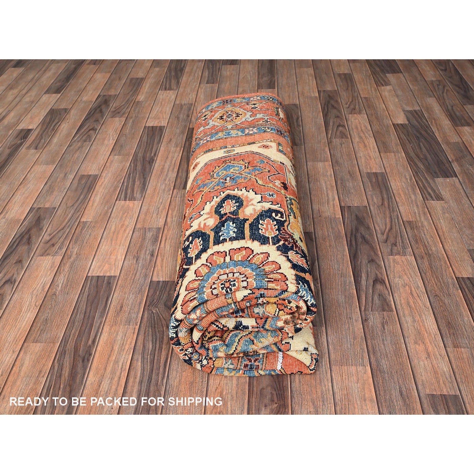 8'X9'7" Orange Afghan Peshawar Seeripe Heris Design Hand Knotted Wool Rug