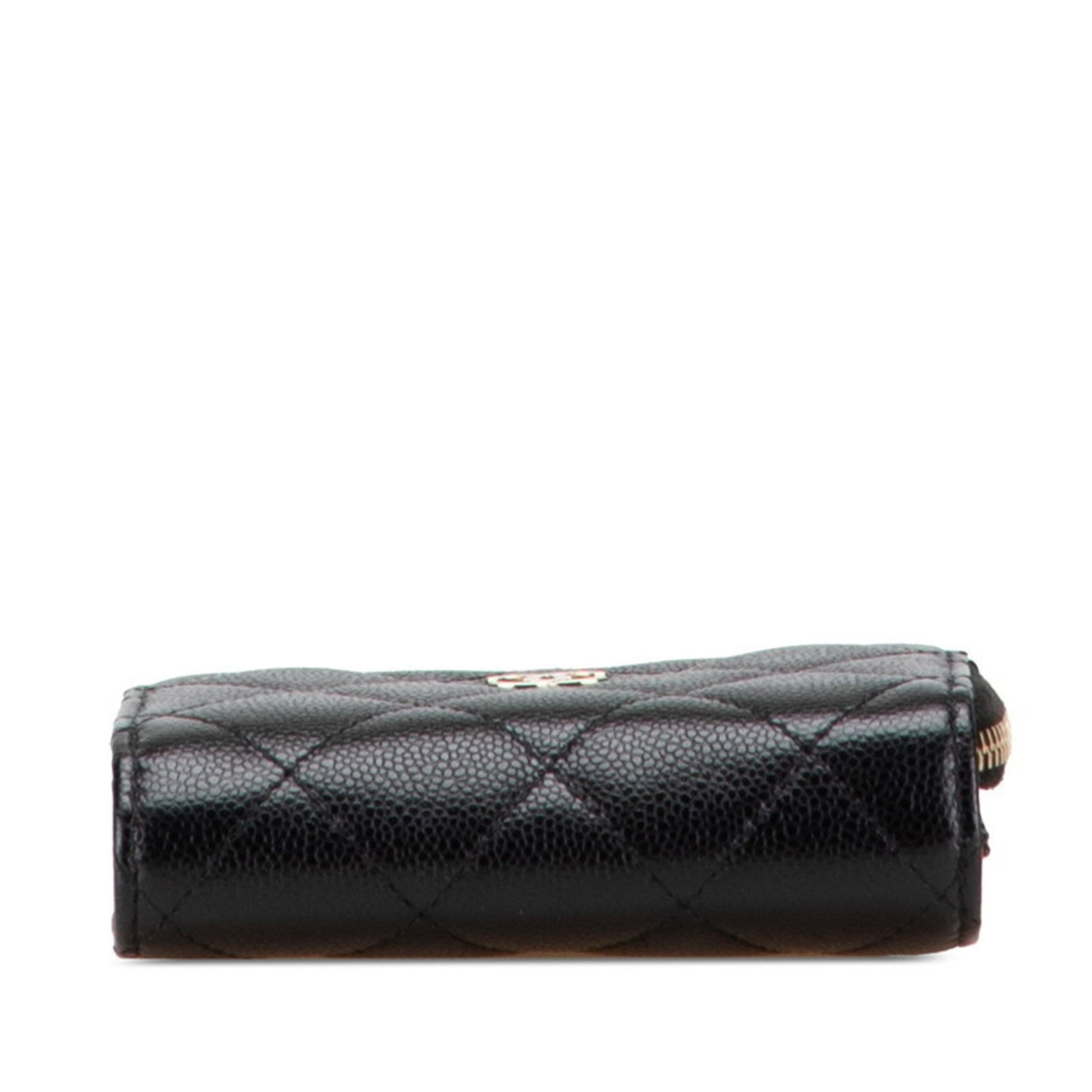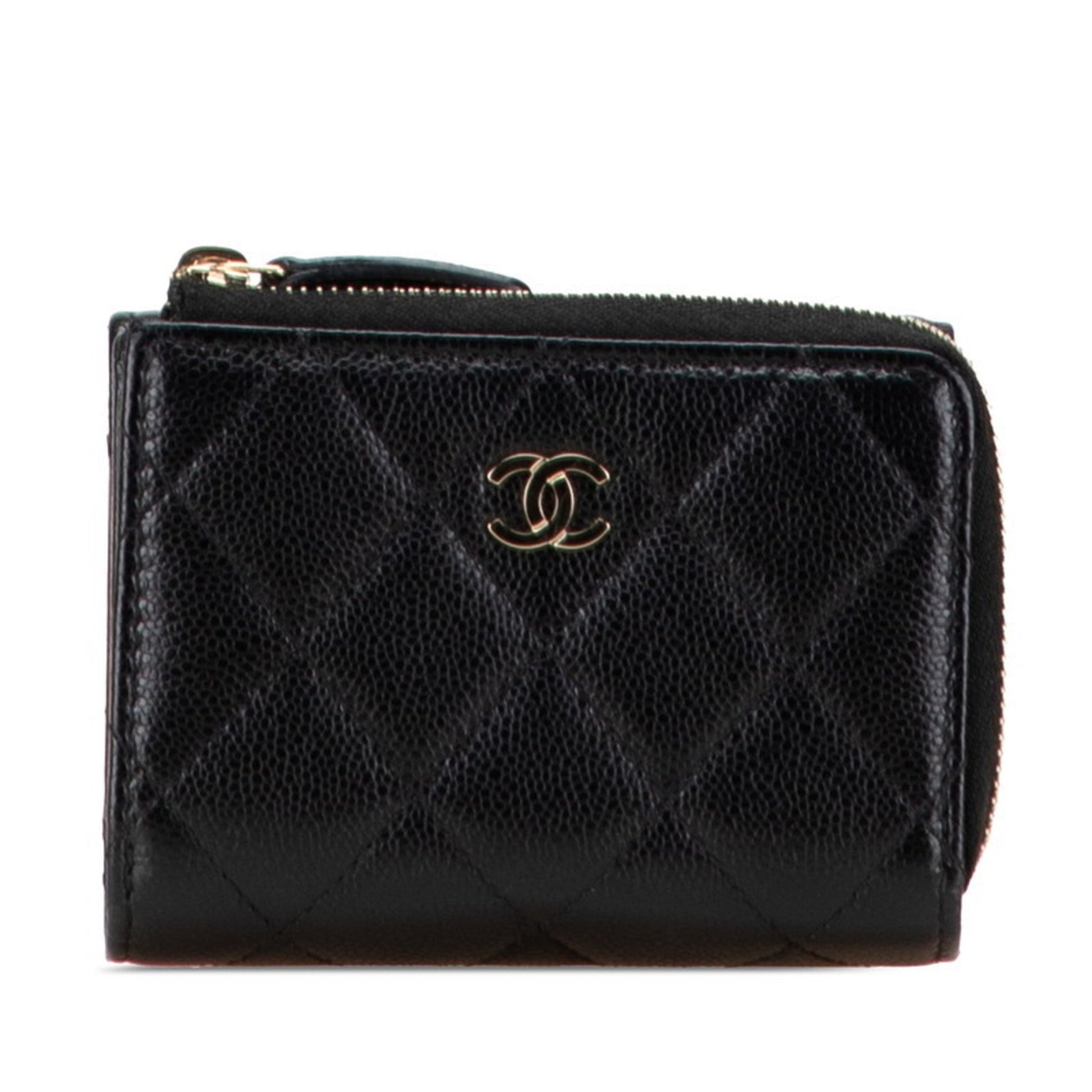 Chanel Matelasse Coco Mark Tri-Fold Wallet In Black Caviar Skin
